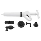 Application It Is Suitable for All Occasions, Such As Toilets, Squats, Kitchens, Swimming Pools, and Wash Basins. It Can Deal with Various Blockages Caused by Various Garbage Such As Hair, Cloth, Tea Leaves, Leaves, Grease, and Oil. Specification Main Material: Abs Color: White Start Mode: Pneumatic Detachable Putter Size: 15.24*4.06cm/ 6*1.6in Toilet Plug Diameter: 8.89cm/3.5in Vegetable Pool Plug Size: 10.92*10.92cm/4.3*4.3in Converter Size: 8.89*8.38cm/3.5*3.3in Floor Drain Plug Size: 5.59*3.81cm/2.2*1.5in Rubber Inflatable Base Size: 5.84*15.24cm/2.3*6in Package Size: 60*19*9cm/23.62*7.48*3.54in Gross Weight: 1.05kg/2.31lbs Package Included 1x Air Plunger for Toilet 1x Converter 1x Base 3x Plunger Heads 1x English Manual High Pressure Toilet Air Plunger Kit Air Toilet Unclogger Air Drain Blaster Kit View more↓ High Pressure Air Plunger Toilet Drain Clog Pipeline Dredge Remover Blaster New Application It Is Suitable for All Occasions, Such As Toilets, Squats, Kitchens, Swimming Pools, and Wash Basins. It Can Deal with Various Blockages Caused by Various Garbage Such As Hair, Cloth, Tea Leaves, Leaves, Grease, and Oil. Specification Main Material: Abs Color: White Start Mode: Pneumatic Detachable Putter Size: 15.24*4.06cm/ 6*1.6in Toilet Plug Diameter: 8.89cm/3.5in Vegetable Pool Plug Size: 10.92*10.92cm/4.3*4.3in Converter Size: 8.89*8.38cm/3.5*3.3in Floor Drain Plug Size: 5.59*3.81cm/2.2*1.5in Rubber Inflatable Base Size: 5.84*15.24cm/2.3*6in Package Size: 60*19*9cm/23.62*7.48*3.54in Gross Weight: 1.05kg/2.31lbs How to Use 1. Remove the Air Plunger for Toilet. 2. Insert Inflatable Base. 3. Insert the Inflatable Handle. 4. Start to Inflate. 5. Install the Toilet Nozzle. 6. Pull the Trigger to Clean. Package Included 1x Air Plunger for Toilet 1x Converter 1x Base 3x Plunger Heads 1 x English Manual Description You Must Also Have a Meltdown Because of Clogged Pipes at Home! This Air Plunger for Toilet Allows You to Easily Get Rid of This Embarrassing Situation and No Longer Have to Pay a Huge Amount of Money to the Repairman. You Only Need a Short Time to Raise the Pressure to 0.4mpa, Then Pull the Trigger and Release the High-pressure Gas. It's That Easy! Key Features Efficient Cleaning Power : the Air Plunger for Toilet Uses the Power of High-pressure Compressed Air to Blast Clogs Quickly and Easily, with a Plunger Tip That Ensures a Seal for Tremendous Pressure. It Is Faster and More Effective than Traditional Plungers. Easy to Operate : It's Also Great for Beginners and Master Plumbers, Allowing Them to Use It with less Effort. It Takes less Time to Raise the Pressure to 0.4 Mpa, Then You Pull the Trigger to Release the High-pressure Gas. It's That Simple! User-friendly Design : the Reinforced Handle, the Threaded and the Non-slip Design Make the Air Plunger for Toilet Easy to Pump. the Non-slip Handle Incorporates an Ergonomic Design for a Comfortable Grip. Quality Material : It Is Made of Abs Plastic Handle and Natural Rubber Sealing Head, Reusable Without Asking for Help from a Plumber and Easy to Clean. the Thick Wall of the Barrel Is Anti-cracking , Further Extending Its Service Life. Fully Equipped : It Has 3 Replaceable Plunger Heads for Unclogging All Kinds of Pipes, Toilets, Floor Drains, Bathrooms, Sinks, Washbasins, Vegetable Sinks, Drains, Etc. Therefore, It Can Meet Almost Most of Your Unclogging Needs. Easy to Store : the Ring Trigger on the Plunger Can Also Be Used As a Hanging Buckle, Which Can Be Hung on the Wall After Use to Prevent the Plunger from Lying on Wet Surfaces. Anti-splash : It Has a Built-in Expansion Plug and Is Sealed, Which Allows It to Expand Before Unclogging, Seal the Pipe Opening and Prevent Wastewater Backflow and Splash. Energy-saving and Environmental Protection : It Chooses the Pneumatic Method Instead of Electric Drive, so It Is Very Energy-saving. Besides, It Makes You No Longer Need to Use Harmful Chemicals, so It Frees You from the Danger of Corroding Pipes or Endangering Your Family from Now on. Details Air Pressure Meter : the Air Pressure Meter Is Designed Upward, Making It Easier to Observe When You Use It. It Can Accurately Control the Pneumatic Activity and Operating Force. You Can Adjust the Pressure According to Different Dredging Requirements to Avoid Spillage and Damage. Removable Putter: Connecting the Putter Can Easily Fill to 6bra Pressure, so You Can Get Rid of the Difficulties of One-handed Inflation from Now on. Toilet Plug : It Is a Plug Specially Designed for the Toilet. the Elbow Design Facilitates a Tight Fit and Will Not Damage the Glaze of the Toilet. Inflatable Base : the Inflatable Base on the Top with a Non-slip Design Is Easy for You to Step on. Therefore, It Is More Convenient for You to Inflate. Notes 1. Unclogging Toilets, Kitchen Sinks, Floor Drains, Bathtubs Require the Pointer of the Barometer to Reach 4-5. Please Use the Appropriate Plunger Head to Clean up, and Try to Insert the Rubber Plunger Head Tightly into the Pipe. Do Not Leave a Gap, Otherwise the Water May Splash out with the Air. 2. When Unclogging the Toilet, Please Pay Attention to the Fit with the Toilet Surface. Just Tilt 45 Degrees When Using. It Is Suitable for Siphon Toilets, Not for Direct Flush Toilets and Squatting Toilets. 3. Do Not Point the Air Release Button at the Mouth, Nose, Ears and Eyes. 4. Use It with Parents When Underage. 5. If the Pipe Is in a Semi-clogged State, It Is Recommended to Put some Toilet Paper and Debris to Make the Pipe Nearly Fully Clogged so That the Product Can Be Used More Effectively. 6. Using More Water Will Not Be Easy to Splash. When Using This Product for the First Time, It Is Recommended to Use Other Items to Cover up so As Not to Splash Themselves. 7. Try Not to Use More than 10 Times in a Row so As Not to Damage the Machine by High Temperature. Let It Dry for More than 30 Minutes Before Use. 8. Please Allow the Slight Color Difference Caused by the Shooting Light and 1-3cm Error Due to Manual Meas