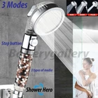 High Turbo Pressure Shower Head Bathroom Powerful Energy Water Saving Filter Features : Type: Ionic Filter Handheld Shower Head Material: PC, stainless steel and bio active mineral stones Size: Length:22cm, Shower Head Diameter:8cm Quantity:1 shower head 3 modes: Rainfall/ Massage/ Jetting Health benefits: The bio active mineral balls helps to purifies water, removes chlorine and releasing a large of negative ions while showering. Get smoother skin, reduce oil secretion, increase cell viability, improved cleaning effect and hair loss prevention. Lasers perforated tech Saving water and increase pressure. Easy installation G1/2 interface adjust all international standard family hose Tips: Because of high water pressure, water storage in the shower is a normal phenomenon. Water pressure is 3 times the normal shower, please affix firmly in the shower, so as not to spray to other places. Notice: Purchase only includes only shower head. Hose is not included