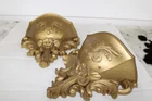 Vintage Gold-Tone Hollywood Regency Wall Pocket Planters – Elegant Mid-Century Decor Wall pockets and planters like these were popular decorative accents in the mid-20th century , often used to showcase flowers or greenery. Featuring an ornate gold-tone finish , these pieces reflect the Hollywood Regency aesthetic , known for its glamorous and sophisticated design . Crafted from molded plastic , these planters are lightweight yet durable , making them easy to hang and display. They are in great condition and ready to add a touch of vintage elegance to any space. Perfect for Hollywood Regency, Art Deco, or vintage-inspired decor , these wall pockets make a stunning addition to your home! Please review all photos for details on condition.