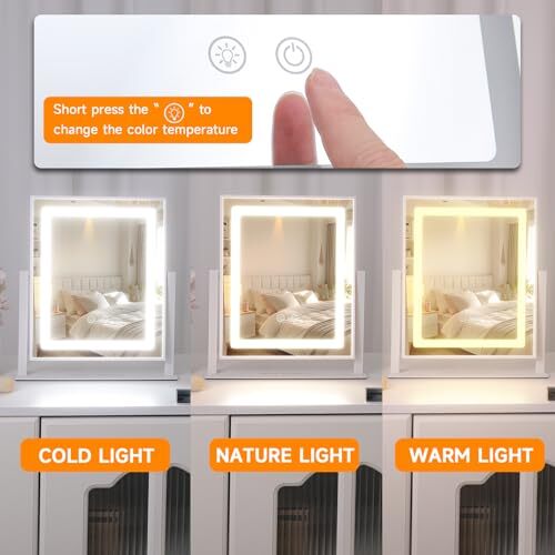 Return Policy Fast Delivery Trusted seller Lighted Makeup Mirror,Hollywood Vanity Mirror with Lights,Touch Control,3 Colors Dimable,Brightness Adjustable,Detachable 10x Magnification,for Vanity Desk Tabletop,Bedroom,360°Rotation,Gift for Women Product Description Brightness Adjustable and 3 Color Lighting Modes: vanity mirror with lights has 3 color lighting modes: warm light, white light and natural light, and the lighting brightness can be adjusted 10%-100%, which can perfectly meet your different makeup needs and make your makeup more delicate Intelligent Touch Control and Memory Function: This lighted makeup mirror has 3 touch buttons, tap the “Power” button to turn on/off the light, long press the “Power” button to adjust the LED brightness. Tap the “bulb” button to change the color mode, long press the “bulb” button to switch the LED color smoothly, this lighted vanity mirror is specially designed with memory function, when you turn it on again, it will return to the brightness and color you used last time Detachable 10X Magnifying Mirror and 360°Rotation:Makeup Mirror with Light with Removable 10x Magnifier and 360 Degree Freedom of Swivel allows you to easily rotate this makeup mirror with light to every angle to help you see more details and help apply mascara, eyeliner, eyebrows and lipstick. Perform better touch-ups to give you the most perfect look for those who are looking for sophistication Elegant and sturdy design and thoughtful accessories: one-piece lighted vanity mirror, can be used directly without installation, LED light service life of up to 50,000 hours, durable metal base and equipped with non-slip pads, in order to prevent the use of sliding, to protect your desktop, equipped with USB power plug, to help you solve the problem of the lack of power plug and can not be used Perfect Gift & 100% Satisfaction Guarantee:This vanity mirror with lights is easy to use no assembly required ,very suitable as a gift for girls who love beauty. Especially on birthday, Valentine's Day, Mother's Day, Christmas, etc.We offer 12-MONTH Exchange or 60-DAY Money Back Unconditionall. Please feel free to contact us if you have any product problems Shipping Returns Payment Shipping Shipping is FREE to all addresses other than APO/PO boxes in the lower 48 states. All our stock ships from US-based warehouses. Shipped via USPS or UPS (depending on location and package weight) Unless stated otherwise, all orders will ship within 24-72 hours of your payment being processed. Check our feedback to see the great reviews of FAST shipping we offer. Returns Seller does not accept returns Payment We currently accept payment via eBay managed payments only. Once payment is cleared, we will dispatch your shipment within 1-3 business days. Please refer to the "Shipping" tab for more information regarding shipping speed to your destination.
