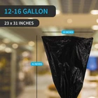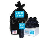 Upgrade your home and kitchen essentials with Black Trash Bags. Designed and made in the USA, these kitchen garbage bags are an epitome of quality and strength, perfect for everyday use. Each pack contains a generous 250 count of 12-16 gallon trash bags, ensuring you always have a bag at hand for all your disposal needs. These extra-tall bags, measuring 24 x 31 inches, are tailored to fit standard wastebaskets, making them an excellent choice for both home and office waste management. What sets our black trash bags apart is their .8 mil thickness, crafted from durable and puncture-proof resins. This design guarantees resistance to sharp objects and standard loads, preventing leakages and spills. Whether you're disposing of general food waste or office papers, you can count on these bags to hold up without ripping or tearing. Trash Bags are more than just a functional necessity; they are a testament to our commitment to quality. Every bag is meticulously inspected to ensure it meets our high standards of durability and strength. The sleek black color adds a touch of sophistication, seamlessly blending with any kitchen or office decor. Choosing means investing in a product that is built to last. With our black kitchen garbage bags, worry no more about unexpected tears or punctures; we've got you covered. Experience the convenience and reliability of our extra tall, 12-16 gallon trash bags today. Make a smart choice for your home or office. Choose for strong, durable, and quality black trash bags that you can count on! Quality Black Trash Bag: This high-quality black trash bag is designed for home and kitchen use. Made in the USA, it's strong and durable, perfect for kitchen garbage and office waste. Large Quantity: With a 250 count per box, this extra tall kitchen garbage bag is ideal for standard wastebaskets. Its 23 x 31 size accommodates general food waste and more. Robust Construction: Our kitchen garbage bag features a .8 mil thickness, ensuring a strong and sturdy bag that can withstand heavy loads without tearing or puncturing. Versatile Use: This black trash bag is perfect for a standard wastebasket, suitable for both home and office waste. Its extra tall size makes it a versatile choice for various needs. Puncture Proof Resins: Made from puncture proof resins, this durable trash bag can handle small , lightweight, general food waste and sharp items without ripping or tearing, offering reliable waste management.