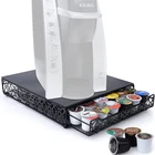 42 k cup drawer is a solid black features pre-assembled drawer, and matches any decor The 42 k-cup storage capacity save counter space. Durable metal material. keurig pod holder easy-open drawers for conveniently organizing keurig storage drawer supports the weight for 42 kups and designed not to bend coffee pod holder has modern design and matches any kitchen or office Dimensions - 13-1/4-inch lenth by 13-1/2-inch width by 3-1/8-inch height