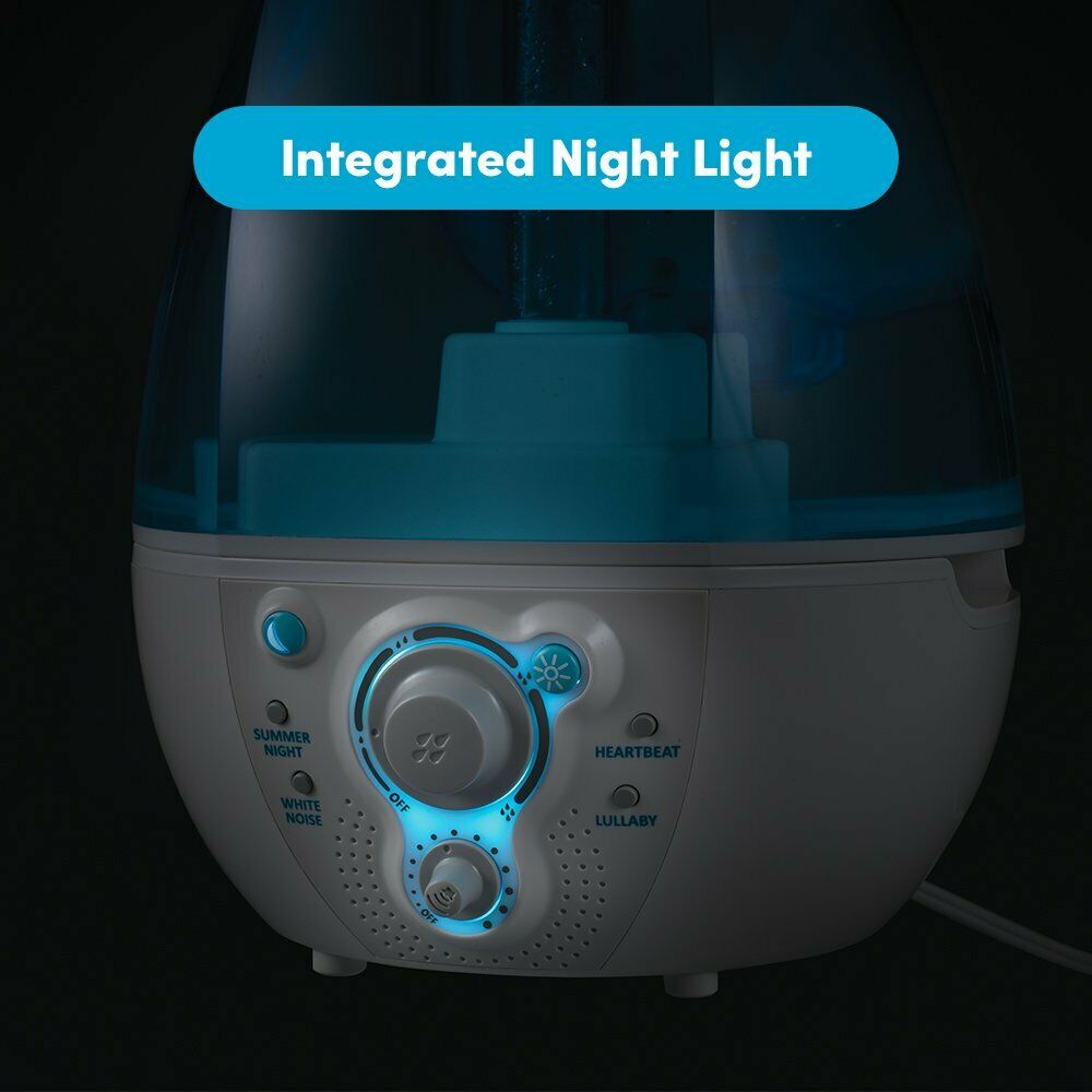 Ultrasonic Humidifier and White Noise Machine | Plays 4 Baby Lullaby Sounds, Calming Nightlight, Clean Tank Technology, 45 Hour Runtime, 1 Gallon Tank... Brand New Sealed Box. 4 SOOTHING LULLABY SOUNDS: Choose from 4 digitally recorded tranquil sounds: Heartbeat, White Noise, Summer Night and Lullaby. Add HoMedics MyBaby’s soothing noises to your baby’s sleep routine to help them fall asleep faster and stay asleep longer. The adjustable volume setting allows you mask background noise ensuring your baby gets a good night’s sleep or an uninterrupted nap. A sleeping baby means more sleep for the whole family! MULTI-USE HUMIDIFIER & SLEEP MACHINE: This one unit that has the function of 4 different devices! The MyBaby Humidifier features a soft illuminating nightlight, humidifier, air purifier, and white noise machine. Mist rooms up to 240 sq. ft. The 1-gallon tank has a run time of up to 45 hours. The ultrasonic purifier features a clean tank technology, preventing mold and mildew buildup. ALSO, choose from 4 relaxing sounds that will lull your baby into a deep sleep COMPACT & PORTABLE FOR TRAVEL: The MyBaby Humidifier is small and lightweight, it easily fits into any Mommy bag or suitcase. Bring it with you to create a familiar sleeping environment for your baby no matter where you travel! It measures 8.72" L x 8.68" W x 12.23" H and its cord is 6’ long CUSTOMIZABLE EXPERIENCE: The Ultrasonic Mister is completely customizable. Choose from its 4 lullaby sounds, turn the nightlight on or off, turn the volume louder or softer and increase or decrease the mist output. The therapeutic sounds can be used for relaxation, sleep, or travel. You can choose to play the relaxation sounds continuously, or choose from the auto-off timer which can be set for 15, 30, or 60 minutes to conserve energy WHAT’S INSIDE THE BOX: One MyBaby SoundSpa Ultrasonic Humidifier and White Noise Machine. One user’s manual. One 30-day money back guarantee. Technical Details Product Dimensions 8.72 x 8.68 x 12.23 inches Item model number MYB-W45 Is Discontinued By Manufacturer No Target gender Unisex Number Of Items 1 Batteries required No Item Weight 3 pounds Track Page Views With Auctiva's FREE Counter
