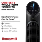Enjoy a cool breeze in every room with the Honeywell 40" Quiet Set Tower Fan. It features five speeds that are customizable and range from sleep to power cool settings. The lights on the control panel automatically dim after 15 seconds, making it ideal for nighttime use as well. This slim tower fan has touch-button electronic controls that are easy to use and a remote-control nest. The slim design of this unit is convenient because it does not take up too much space in your home. The oscillating tower fan has a sturdy and durable base that is to easy setup, requiring no tools. 5-speed setting, customizable and range from sleep to power cool settings Powerful, quiet whole room cooling Remote control makes it convenient to control the unit from a distance Oscillation evenly cools the entire room Electric tower fan has a sturdy base Easy set up and no tools assembly Remote control nest for safe storage Auto-dim lights reduce to 50% brightness after 15 seconds ideal for nighttime use, interaction brings lights back on at 100% 1, 2, 4 and 8 hour auto shut-off timer and touch button electronic controls