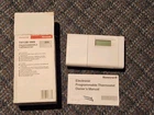 The Honeywell T8112D1005 Electronic Low Voltage Programmable Thermostat in White is compatible with Honeywell products, powered by batteries, with a 5-wire configuration. It features a digital display, temperature sensor technology, programmable settings with 4 periods per day, and control options including switches and push buttons. This thermostat is wall-mounted and suitable for heating and cooling systems, with smart home compatibility. Like new but box is worn as shown. Batteries are not included.