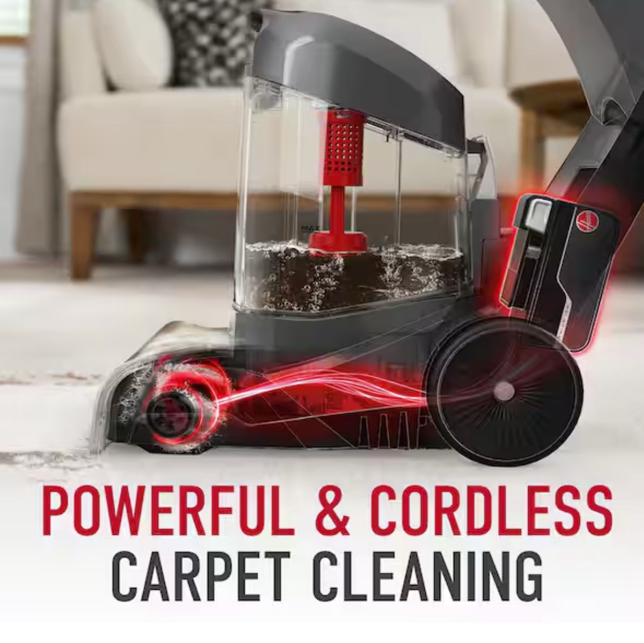 This is a Hoover carpet cleaner that uses a canister/cylinder design and is cordless. It includes a variety of accessories such as a gentle clean brush roll, a trial solution, a charger, and a deep clean brush roll. The unit quantity is one, and it comes with a manufacturer warranty of 3 years. The vacuum has a multicolor design and is portable.