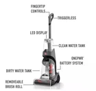 BRAND NEW!!!! NEVER OPEN!!!! FACTORY SEALED!!! Hoover ONEPWR SmartWash is the world's first cordless carpet cleaner, packed with advanced and intuitive tech to outclean even the leading corded competition*. This powerful carpet cleaner combines triggerless, automatic cleaning technology-automatically sensing when to wash and dry -with TruMAX Technology for extended cleaning sessions. Tackle deep, set-in stains effortlessly with the Spot Mode, while tool-free and hassle-free cleanup is ensured with the removable dirty water tank lid, nozzle, and brush roll. Elevate your cleaning routine with the convenience of cordless power and intelligent features, backed by the most advanced cordless cleaning network in the world.*Compared to Bissell ProHeat 2X Revolution Pet Pro 3588 in MAX Clean Mode ASTM F2828-20 POWERFUL & CORDLESS: Enjoy powerful cleaning and extraction with the convenience of cordless cleaning CORDLESS CLEANING: Out cleans the leading corded competition**Compared to Bissell ProHeat 2X Revolution Pet Pro 3588 in MAX Clean Mode ASTM F2828-20 AUTOMATIC CLEANING TECHNOLOGY: ONEPWR SmartWash automatically senses when to wash and dry SPOT MODE: Get an extra burst of power to tackle deep, set-in stains DRY ONLY MODE: Dry floors more quickly and get back to life quicker TRUMAX TECHNOLOGY: Clean farther and take fewer trips to the sink. TruMAX Technology allows for more dirty water to be captured before the tank needs to be emptied HASSLE-FREE CLEAN-UP: Removable dirty water tank lid, nozzle, and brush roll make clean-up easy SELLER IS NOT RESPONSIBLE FOR ANY MANUFACTURING MALFUNCTION