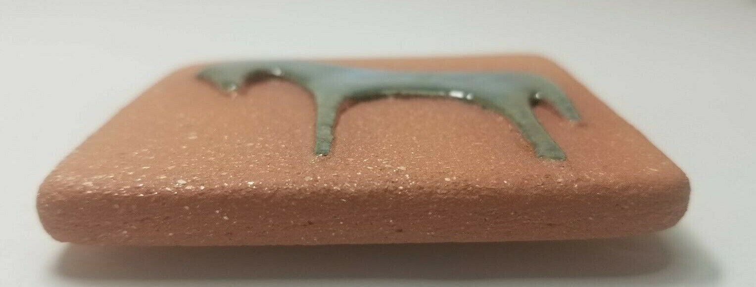 Wall Art Tile / Magnet - Horse - Pottery-Taos New Mexico- Puebloan People. Hand crafted in Taos, New Mexico Originally from Twinning Weavers Contemporary Art in the 1980's Terra-cotta tile with glaze fired design Magnet measures 3" x 3" Beautiful refrigerator magnet