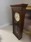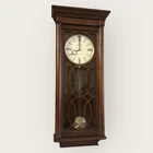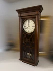 Howard Miller Kathryn Wall Clock, Tuscany Cherry - 62552 Howard Miller Kathryn Wall Clock, Tuscany Cherry - 625525 Finished in Tuscany Cherry on select hardwoods and veneers, this flat-top wooden wall clock features a unique fret cut grill over plain glass, turned columns, and decorative top molding. * Tuscany Cherry Finish * Off-white dial * Quartz * Volume control * Automatic nighttime chime shut-off option * Black Roman numerals and hour markers * Chime: Westminster or Ave Maria * Battery Type: 2C * No Assembly Required * Part of the Kathryn Collection Overall Dimensions: 13"(W) x 5"(D) x 30"(H) Item Weight: 15.6 lbs.