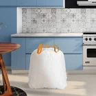 Husky 13 Gallon Drawstring Unscented Tall Kitchen Bags resist tears and punctures so you can transport your kitchen waste to the curb with confidence. These 24 inch by 27 inch kitchen bags fit most standard-size kitchen trash cans. Manufactured with high quality expandable drawstring which grips the can, keeping it in place. 120 bags per box. Manufactured with 20% post-consumer recycled content. Husky 13 gal 120 count 24" x 27" 0.8 mil thickness One-by-One dispensing Unscented Manufactured with 20% post-consumer recycled plastic Great for residential, indoor trash