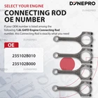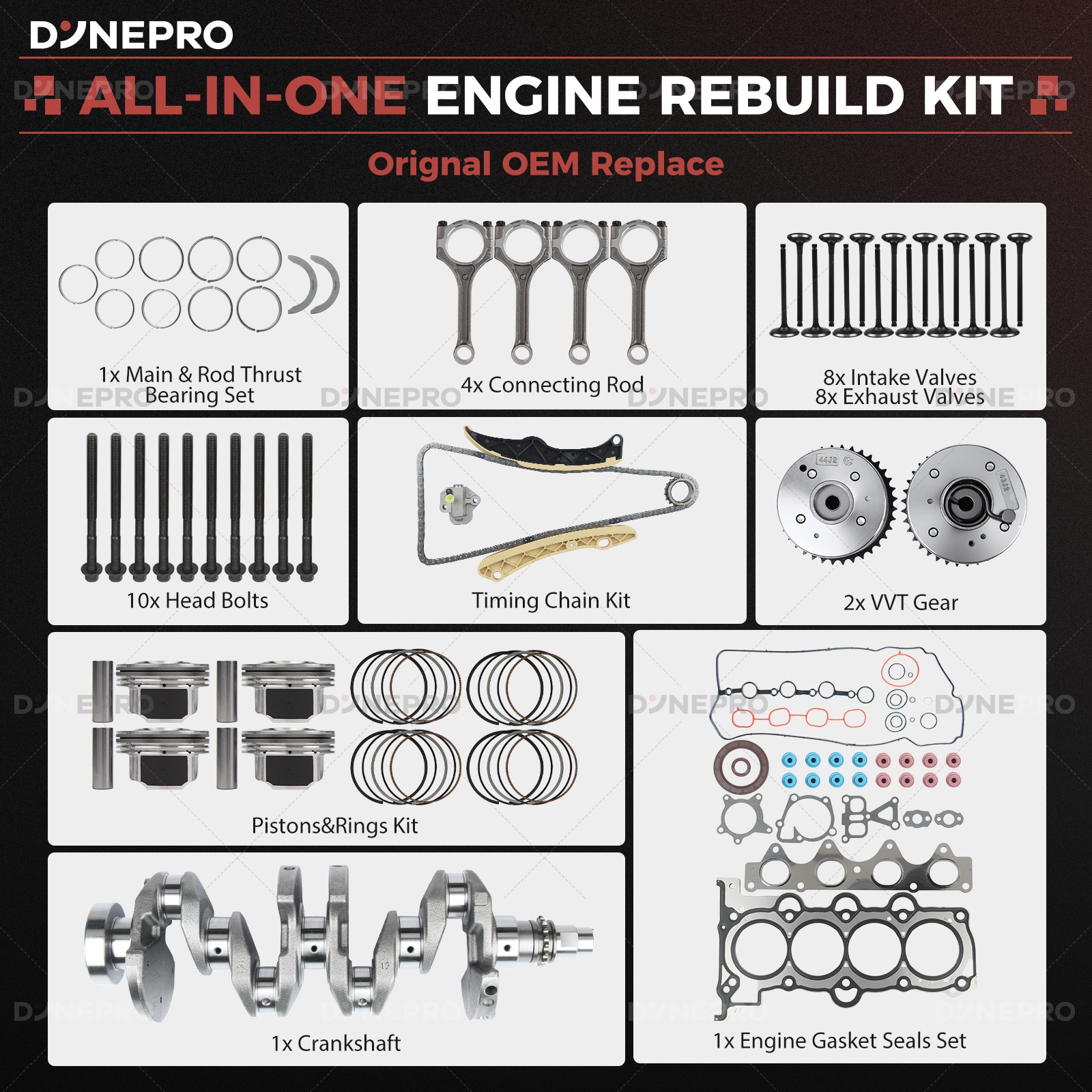 Engine Parts Installation Guide About Us Contact Us Feedback Dynepro® Pro Series Master Engine Rebuild Kit Note *Please follow the steps below to confirm that the product is suitable for your vehicle. *If you are not sure, please contact us, Please have your vehicle VIN number, year, and car model ready when contacting us. *The VIN code is a 17-digit number composed of letters and numbers. It is usually behind the car's windshield or on the car's nameplate. *No Instruction Included, professional installation is highly recommended. Vehicle Application Compatible with: G4FD 1.6L engines . for Hyundai Accent 2012-2018 1.6L GAS Naturally Aspirated for Hyundai Veloster 2012-2017 1.6L GAS Naturally Aspirated for Hyundai Veloster 2013-2017 1.6L GAS Turbocharged for Kia Rio 2013-2017 1.6L GAS Naturally Aspirated for Kia Soul 2011-2018 1.6L GAS Naturally Aspirated for Kia Soul 2017-2018 1.6L GAS Turbocharged Note: VIN confirmation required. Item Specifics Brand : Dynepro Type : Engine Rebuild Kit Application : For G4FD Hyundai Kia 1.6L Engine Manufacturer Part Number : G4FD Comapatible Make : FOR HYUNDAI KIA Gasket Set Kit OE Number: 209102BU06 Main Bearings OE Number: Rod Bearings OE Number: Thrust Washers OE Number: 210202B100、210302B100、230302B120 Pistons OE Number: Piston Rings OE Number: 230412B600 Timing Chain Kit OE Number: 243212B620、244312B700、244202B611、244102B700、231212B710 Camshaft OE Number: 243502B600、243702B610 Connecting Rods OE Number: 235102B010 Cylinder Head Bolts OE Number: 223212B700 Crankshafts OE Number: 231102B610 Intake Valves OE Number: Exhaust Valves OE Number: 222112B000、222122B000 Important Notice : Package Included: Just like the picture Professional installation required Items Included : Full Gasket Set Main Bearings Rod Bearings Thrust Washers Pistons Piston Rings Timing Chain Kit Connecting Rods 10X Cylinder Head Bolts 2X Camshaft 8X Intake Valves 8X Exhaust Valves Manufacturer Warranty : 3 Years Material : Cast Iron, Steel Note : No Instruction Included Notice : This is aftermarket replcement part. Shop Now >> Instant Fitment Email your Hyundai model (e.g., Elantra, Tucson, Santa Fe) and year → Get a repair kit tailored to your VIN. Restore factory power, drive like new. Tech Support: Email us (Provide VIN for tailored parts list) Learn More Learn More Learn More PAYMENT We accept eBay managed payments for all orders. If you have any questions, please contact us. SHIPPING Ordering this kit requires additional information: the vehicle engine model as well as the VIN (17 digits), and also requires you to verify a match to your vehicle using the vehicle application data on Ebay. Be sure to provide this information when placing your order or via a separate message. Product will be shipped within 1-3 business days after full payment is received and verified. Delivery Time is about 3-7 business days to most of countries. We ship the package to your shipping address in eBay instead of the one in PayPal. Please tell us your shipping address if it is different from the one in eBay. RETURNS We offer eBay's best return policy. If you utilized Ebay's fitment and the parts you received do not fit your vehicle, we will pay to have them returned. Should you desire to return this kit for any other reason, Includes kits that are incorrect because you did not provide the VIN in the order notes, you will be responsible for return shipping. These kits are heavier and cost more to ship, so we ask that you provide vehicle information and verify suitability before ordering.Unfortunately, we cannot accept returns from international customers at this time. ★★★★★ So far the engine overhaul kit has performed well. I love the performance with this kit installed. On my 2004 F150. Installation was easy. Everything is perfect. Considering this kit is cheap, it doesn't get any better than this. ----James ★★★★★ This was a great price. lt was made in the USA. After 10,000 miles it is running great. ----Liam ★★★★★ As of the time of this review this is well worth the money and it fits as it should. ----Noah ★★★★★ This set was installed perfect fit. lt has been installed on a truck that has been used very much every day. Working perfect and so much cheaper than the auto stores. ----Ethan ★★★★★ Seemed to be a perfect replacement part and it works. ----Oliver ★★★★★ Everything fit how it was supposed to and have been driving it for a week with no problems. ----Benjamin ★★★★★ The seller was very nice and provided me with professional advice on the installation, which was a breeze and is still going strong after 10,000 miles. ----Michael On Aug 11, 2025 at 19:59:35 PDT, seller added the following information: