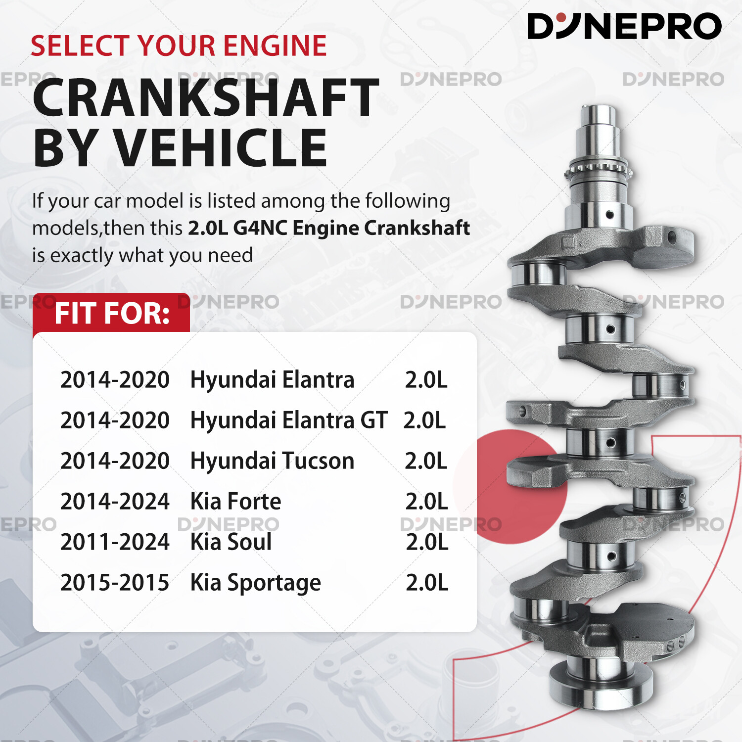 Engine Parts Installation Guide About Us Contact Us Feedback Dynepro® Pro Series Master Engine Rebuild Kit For Hyundai OEM Spec Certified Engine Repair Kit Precision Engineered · Factory Reliability ⭕Crankshaft Assembly Forged from EN40B High-Tensile Alloy Steel , precision-balanced to ±0.002mm. Triple-stage induction hardening ensures 500,000+ cycle durability for Hyundai’s Smartstream GDI engines , 3x lifespan . ⭕Aluminum Piston Set Hypereutectic Al-Si18 Alloy : Low thermal expansion, 20% lighter than cast iron. Molybdenum-coated skirts : Reduces cylinder wear by 35% in stop-and-go city driving. Integrated cooling channels : Optimized for turbocharged Gamma/Theta II engines,lifespan by 2x. ⭕ Built For Hyundai Owners: ✔️ Oil sludge cleanup (Theta II/Lambda engine rebuilds) ✔️ Timing chain rattle fixes (Nu/Gamma engines, includes tensioner tool) ✔️ Turbo failure prevention (1.6T/2.0T models, full gasket/seal refresh) ✔️ 200,000km+ overhauls (full bolt kit with factory torque specs) ⭕ For Hyundai TechTrust : ✔️ Restore factory power. Drive with Korean precision. ✔️Order Now – Free OEM Repair Manual Included! Support: Email us (Master Techs on call) ⭕ Why Genuine? ⚠️ Cheap parts fail: Non-genuine pistons crack under GDI’s 150-bar fuel pressure. Knockoff chains stretch, causing valve-piston interference. ✅ for Hyundai spec Certified : 100% material compliance with Hyundai MS-350 durability standards. Direct from OEM Plant spec suppliers. 5-year unlimited-mileage warranty. Vehicle Application Compatible with: G4NC 2.0L engines. for Hyundai Elantra 2014-2020 2.0L GAS Naturally Aspirated; for Hyundai Elantra GT 2014-2020 2.0L GAS Naturally Aspirated; for Hyundai Tucson 2014-2020 2.0L GAS Naturally Aspirated; for Kia Forte 2014-2024 2.0L GAS Naturally Aspirated; for Kia Soul 2011-2024 2.0L GAS Naturally Aspirated; for Kia Sportage 2015 2.0L GAS Turbocharged Note: VIN confirmation required. What's included in this complete bundle set -Main Bearings -Rod Bearings -Thrust Washers -Pistons -Piston Rings -Connecting Rods -Crankshafts Shop Now >> Instant Fitment Email your Hyundai model (e.g., Elantra, Tucson, Santa Fe) and year → Get a repair kit tailored to your VIN. Restore factory power, drive like new. Tech Support: Email us (Provide VIN for tailored parts list) Learn More Learn More Learn More PAYMENT We accept eBay managed payments for all orders. If you have any questions, please contact us. SHIPPING Ordering this kit requires additional information: the vehicle engine model as well as the VIN (17 digits), and also requires you to verify a match to your vehicle using the vehicle application data on Ebay. Be sure to provide this information when placing your order or via a separate message. Product will be shipped within 1-3 business days after full payment is received and verified. Delivery Time is about 3-7 business days to most of countries. We ship the package to your shipping address in eBay instead of the one in PayPal. Please tell us your shipping address if it is different from the one in eBay. RETURNS We offer eBay's best return policy. If you utilized Ebay's fitment and the parts you received do not fit your vehicle, we will pay to have them returned. Should you desire to return this kit for any other reason, Includes kits that are incorrect because you did not provide the VIN in the order notes, you will be responsible for return shipping. These kits are heavier and cost more to ship, so we ask that you provide vehicle information and verify suitability before ordering.Unfortunately, we cannot accept returns from international customers at this time. ★★★★★ So far the engine overhaul kit has performed well. I love the performance with this kit installed. On my 2004 F150. Installation was easy. Everything is perfect. Considering this kit is cheap, it doesn't get any better than this. ----James ★★★★★ This was a great price. lt was made in the USA. After 10,000 miles it is running great. ----Liam ★★★★★ As of the time of this review this is well worth the money and it fits as it should. ----Noah ★★★★★ This set was installed perfect fit. lt has been installed on a truck that has been used very much every day. Working perfect and so much cheaper than the auto stores. ----Ethan ★★★★★ Seemed to be a perfect replacement part and it works. ----Oliver ★★★★★ Everything fit how it was supposed to and have been driving it for a week with no problems. ----Benjamin ★★★★★ The seller was very nice and provided me with professional advice on the installation, which was a breeze and is still going strong after 10,000 miles. ----Michael