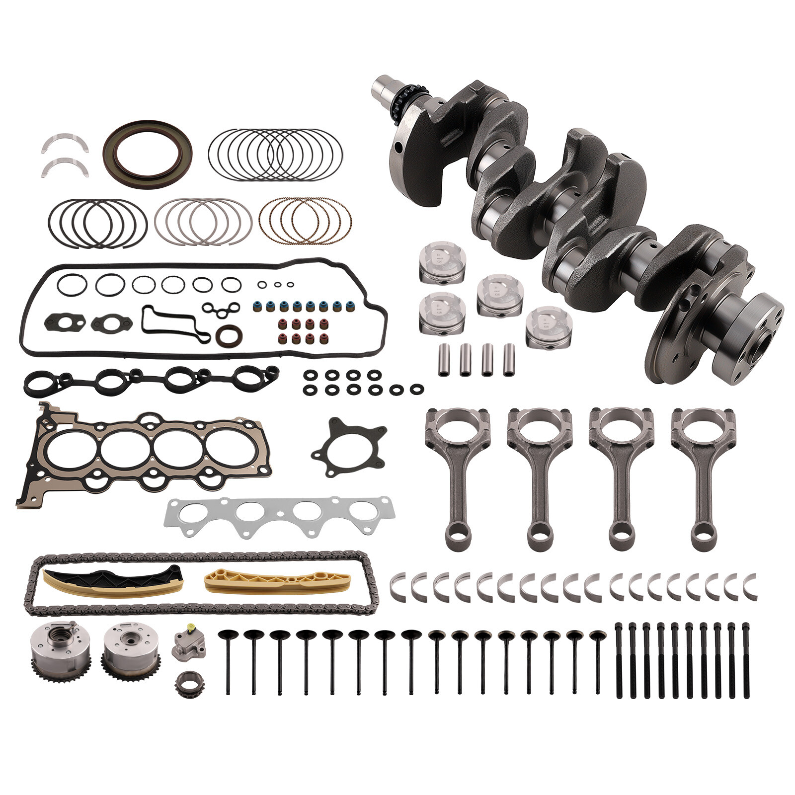qxaac WHY CHOOSE US Fast Shipping International Shipping 30 Days Return Policy Secure Shopping Lowest Price Price match guarantee Manufacturer We know our products Easy Return Quick, Simple Guaranteed Fitment Always the correct part DESCRIPTION Condition: Not Brand New Note *Please follow the steps below to confirm that the product is suitable for your vehicle. *If you are not sur e, please contact us, Please have your vehicle VIN number, year, and car model ready when contacting us. *The VIN code is a 17-digit number composed of letters and numbers. It is usually behind the car's windshield or on the car's nameplate. *No Instruction Included, professional installation is highly recommended. Application For Hyundai KIA G4FD Engine 1.6L Only!!! For Hyundai Accent GL Hatchback 4-Door 2012-2016 For Hyundai Accent GL Sedan 4-Door 2012-2016 For Hyundai Accent GLS Hatchback 4-Door 2012 For Hyundai Accent GLS Sedan 4-Door 2012-2017 For Hyundai Accent GS Hatchback 4-Door 2012-2015 For Hyundai Accent L Hatchback 4-Door 2012-2017 For Hyundai Accent L Sedan 4-Door 2013-2017 For Hyundai Accent LE Hatchback 4-Door 2016-2017 For Hyundai Accent LE Sedan 4-Door 2017 For Hyundai Accent SE Hatchback 4-Door 2013-2017 For Hyundai Accent SE Sedan 4-Door 2015-2017 For Hyundai Veloster Base Hatchback 3-Door 2013-2014 For Hyundai Veloster RE:FLEX Hatchback 3-Door 2014 For Hyundai Veloster SE Hatchback 3-Door 2016 For Hyundai Veloster Tech Hatchback 3-Door 2016 For Hyundai Veloster Value Edition Hatchback 3-Door 2017 For Kia Rio EX Hatchback 4-Door 2012-2017 For Kia Rio EX Sedan 4-Door 2012-2017 For Kia Rio LX Hatchback 4-Door 2012-2016 For Kia Rio LX Sedan 4-Door 2012-2016 For Kia Rio SX Hatchback 4-Door 2015-2017 For Kia Rio SX Sedan 4-Door 2013-2015 For Kia Soul Base Hatchback 4-Door 2012-2017 For Kia Soul LX Hatchback 4-Door 2014-2015 OE/Part number -Crankshaft Oe#: 23110-2B610, 231102B610 603N6-2BU00,231102B610A -Connecting Rods Oe#: 23510 2B000, 23510 2B010, 235102B000, 235102B010 -Gasket Seal Kit Oe#: HB320,HBHY22L,HBK195,HS26554PT,HS55010,HS26554,10027175 -Pistons & Rings Set Oe#: 23041-2B600, 23041-2B610, 23041-2B620, 23410-2B600 -Main & Rod Bearing Oe#: 231102B100, 23060-2B002, 23060-2B120, 230602B701 -Head Bolts Oe#: 22321-2B700 -Intake Valve Oe#: 22211-2B400 -Exhaust Valve Oe#: 22212-2B000 -Timing Chain Kits Oe#: 243212B620, 244202B611, 244312B620, 244102B700, 243502B600, 243702B610 -Engine Valves Set Oe#: 22211-2B400, 22212-2B000 Specification Type: Engine Rebuild Kit Fitment Type: Direct Replacement Package Includes: 1x Crankshaft 4x Conncting Rods 1 Set Gasket Seals Kit 1 Set Pistons & Rings Kit 1 Set Main & Rod Bearing w/ Thrust Washer 8x Intake Valve 8x Exhaust Valve 1 Set Head Bolts 1 Set Timing Chain Kit: 1 x Chain- 124L 1 x Tensioner 1 x Guide-Left 1 x Guide-Right 1 X Timing Gear 1 x Intake VVT Gear ---(24350-2B600) 1 x Exhaust VVT Gear ---(24370-2B610) (Showing as the picture) Feature * High quality Metal and constructed for Anti-rust and Anti-corrosion. * Fully tested under extreme condition for heat resistance and long-life use. SHIPPING CA Domestic Shipping Notice - All items will be dispatched within 24hrs(Mon-Fri) Our carrier collects all the parcels at 4:30am PDT, any payment paid after 5:00am PDT will be shipped the next day at 4:30am PDT. If you paid Before Apr. 1st at 4:30am After Apr. 1st at 4:30am Item Shipped On Apr. 1st at 5:00am Apr. 2nd at 5:00am Est.Delivery Time Apr. 5th - Apr. 7th Apr. 6th - Apr. 8th If our estimated delivery time and eBay’s are contradictory,please refer to the standard delivery time of ours. Estimated Delivery Time From US Outside of US To US Service UPS or Fedex Ground DHL FedEx Est.Delivery Time 3-5 Business days 4-7 Business days ◆ Tracking number will be updated in 24 hours after shipment ◆ Please provide the following shipping information for your order Otherwise your shipment will be deferred. We are not responsible for any shipping lost caused by wrong shipping information Shipping rate If our ebay item listing doesn't show the shipping cost to your place.Please contact us to calculate the shipping fee for you. International Shipment For international shipment, we do not cover any import taxes or duties. Import tax is charged by the government, not us. Our item price and shipping cost do not include any import tax which will be charged by the shipping company when you got the parcel. Please be noted that is not the extra shipping fee. WARRANTY We aim to provide you the good buying experience, 30 days return policy is offered in our store. Please follow our return policy before you return any item(s): If you are unhappy with your purchase for any reason, you can return it to us in an un-used condition in the original packaging within 30 days of purchase and we'll give you a refund or exchange. The refund/Exchange will not include postage/eBay costs. Please note you MUST contact us to obtain a Return Authorization Number before returning any part. Any parcel without the Return Authorization Number will be rejected. If your item is faulty or was incorrect, you must contact our sales representative before returning the parcel and we will endeavour to solve the problem effectively. Video or picture is required to show the item condition before we issue the Return Authorization Number. Important notice 1. Any returned item(s) without Return authorization number will be rejected . 2. Please return your item(s) in original packaging and ensure that all packages are securely wrapped . 3. We will not accept responsibility for loss or damage of goods during transit, please ensure that the insurance cover option is taken where possible . 4. Upon receipt, all products will be inspected at our discretion in 3-5 business days. Then, the updated result will be informed . If you have made a mistake on purchase and wish to cancel the order before it is dispatched please contact us by ebay message as quickly as possible. Note: All parcel will be collected by ca