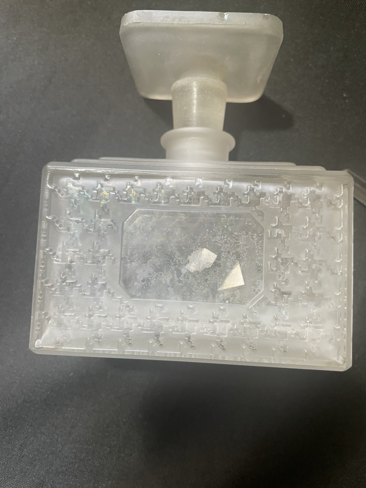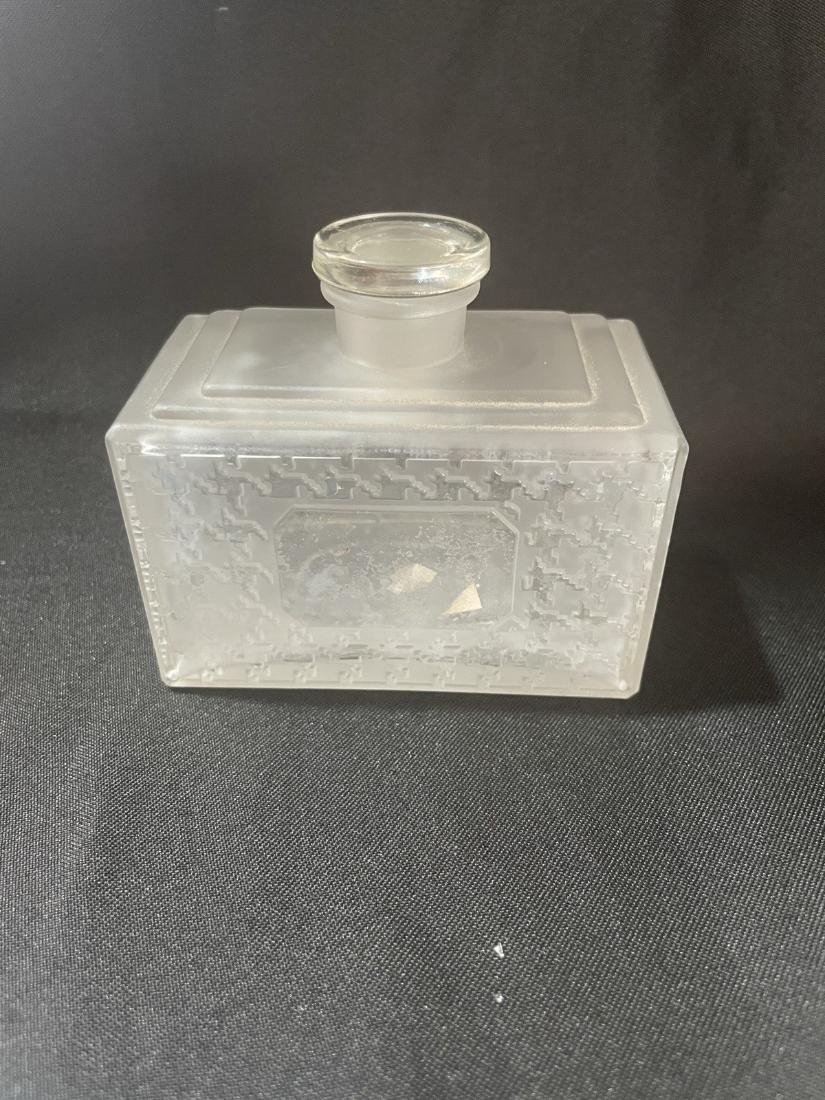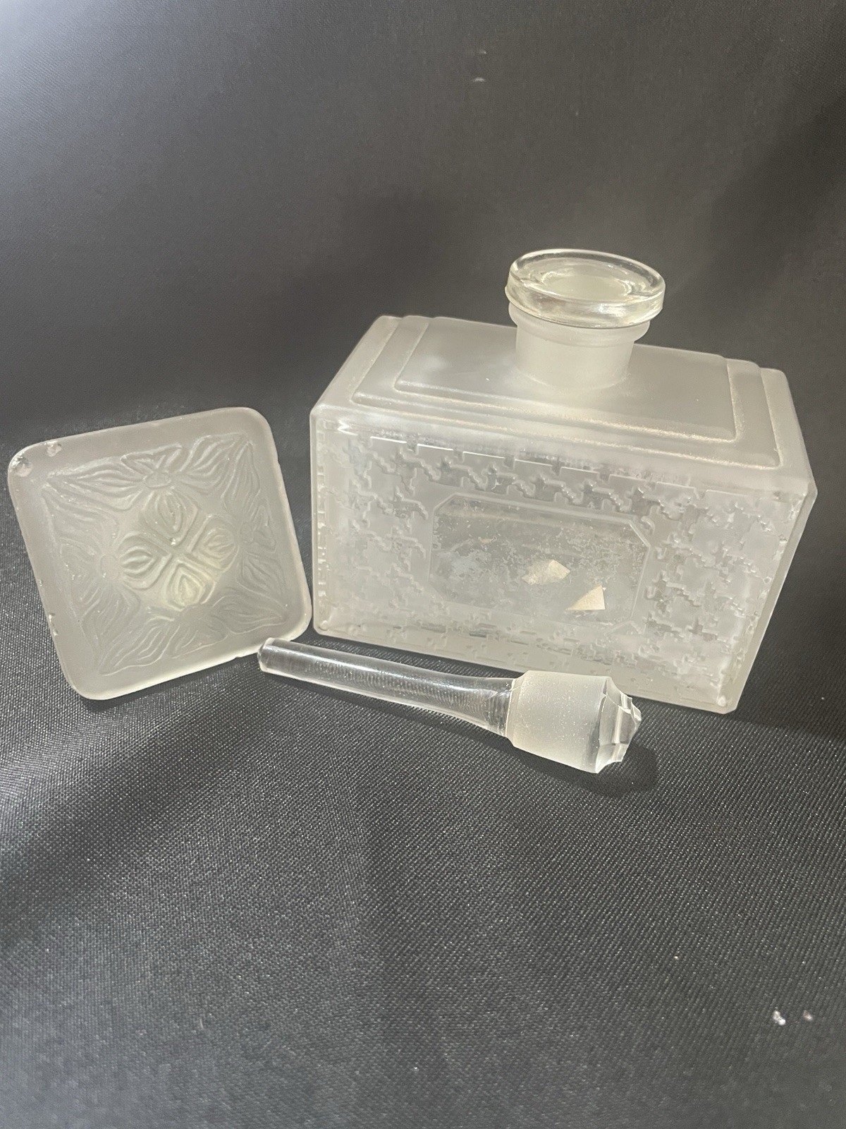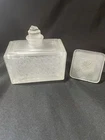 The product is a frosted glass Christian Dior perfume bottle with three stoppers, designed to hold and dispense perfumes. It is a decorative and collectible item that adds a touch of elegance to any vanity or dressing table. The frosted glass design gives it a luxurious and sophisticated look, perfect for storing and displaying high-end perfumes. With the brand name of Christian Dior, this perfume bottle is sure to be a coveted item for any collector or fragrance enthusiast.