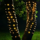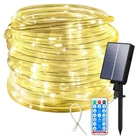Upgrade Solar String Lights - Total 72ft / 200 led Outdoor string lights with 17 keys remote. it provide 8 light modes (1-7 are different flash modes, mode 8 is steady on), Adjust the brightness; Timer function. Total 72ft: 66ft string lights + 6.6ft traction line Energy Saving & Solar Power- High-quality solar power, effective energy saving. It built-in 1200mah rechargeable battery, absorb solar energy during the day, automatically turn on at dusk. The battery can be continuously illuminated for 8-12 hours when fully charged Memory Function & Timing Function: This solar light has memory function, you just need set one time, they stay set until you adjust them again. Timer function - 3H/5H/8H. Longer Life & More Safe - Our solar light is completely covered by a transparent PVC tube, it is durable and flexible, you could DIY the solar lights into any shape you want. It's also much safer for Kids and pets compared with ordinary copper wire string lights Christmas Decoration & IP67 Waterproof - This rope light is IP67 waterproof, you could use this it in sun/ wind /rain/snow/ fog and any weather. It's a good choice for Indoor & outdoor decorations, and fit special events like party, Xmas, Halloween, Thanksgiving, wedding, birthday, Valentine’s day, etc Package: 1* string light, 1* solar panel, 1* remote control, 1* user manual, 10* zip ties. Any questions please contact us.