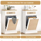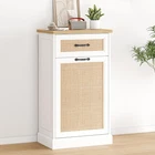 Stylish and Hidden Design:The rattan trash can cabinet is designed to cleverly hide garbage and waste, keep the kitchen or living space clean and orderly, with an aesthetic and decorative effect. And this freestanding pet-proof garbage can cabinet has no top lid, effectively preventing pets from entering the trash can and reducing the risk of accidental spills. (Pet friendly trash can) Convenient Garbage Disposal: The inclined opening design makes garbage disposal easy and simple. Just gently tilt the front panel for quick access and disposal, eliminating the hassle of moving heavy bags or buckets. Additional pull-out drawers and compartments provide additional storage space for easy sorting, recycling and storage of cleaning supplies. Sturdy and Freestanding Cabinet: The bottom and sides of our bins are reinforced to withstand up to 50 pounds of garbage for stability. It can be seamlessly integrated into a kitchen or utility room layout, providing dedicated waste storage space without taking up valuable floor or countertop space. Multifunctional Storage Solution: The 10-gallon cabinet can be used not only for trash storage, but also for pet food storage, laundry baskets, children's toys storage, and even as a kitchen island. Easy to clean, easy to take care of after each use, keep your garbage cabinet clean and tidy. Easy Assembly and Quality Service: All parts and tools for the tilt-out trash can cabinet are clearly marked in the manual, with clear assembly instructions suitable for anyone with no prior assembly experience. Whether you have questions before or after your purchase, please feel free to contact us, and we will provide you with 24/7 professional customer service.