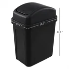 1.8 Gallon / 7 Liter Plastic Trash Can, Small Garbage Bin with Swing Lid, Black Packaged included: 1 pack swing top trash can Size: 10.2" x 6.73" x 13.5", Capacity: 1.8 Gallon / 7 Liter Swing lids makes it easy to throw things away, also keep odors in The waste bin is made of durable plastic, very easy to clean Small trash bin which gives you a lot of choices as to where to put it, such as bathroom, bedroom, living room