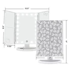 Impressions Vanity Hello Kitty Trifold LED Mirror, Desk Mirror with Lights and Touch Sensor Dimmer, Lighted Makeup Mirror with Adjustable 2X and 3X Magnifying Mirror (White) Product Details Color: White Brand: IMPRESSIONS VANITY · COMPANY UPC: 810082555004 EAN: 0810082555004 MPN: Does not apply Brand: IMPRESSIONS VANITY · COMPANY Room Type: Bedroom Shape: Rectangular Product Dimensions: 11"L x 7"W Frame Material: Acrylonitrile Butadiene Styrene (ABS) Brand: IMPRESSIONS VANITY · COMPANY Room Type: Bedroom Shape: Rectangular Product Dimensions: 11"L x 7"W Frame Material: Acrylonitrile Butadiene Styrene (ABS) Style: Classic Mounting Type: Tabletop Mount Finish Type: Polished Surface Recommendation: Glass Special Feature: Foldable Color: White Theme: Cartoon Specific Uses For Product: Makeup Number of Pieces: 4 Number of Items: 1 Material: Glass Frame Type: Framed Item Weight: 2 Pounds Assembly Required: No Animal theme: Hello Kitty Frame Color: White Manufacturer: IMPRESSIONS VANITY · COMPANY Has Smart Features: No Frame Size: 7 inches Size: 11"L x 7"W UPC: 810082555004 Item Weight: 2 pounds Country of Origin: China Date First Available: December 23, 2021 TRI TONE MOOD: This lighted mirror has a soft touch sensor dimmer switch to adjust the brightness. With this mirror, you can press the button to choose natural, warm, or cool like 3 light color temperatures inside strip LED lighting around the mirror for an even glow HELLO KITTY DESIGN: This amazing lighted makeup mirror comes with Hello Kitty designs. This beautiful LED foil graphics printed mirror has a Hello Kitty print on the left panel and the cute bow is perfectly placed on the upper right panel TOUCH SENSOR: Comes with a front-facing soft-touch sensor switch with a dimming function. Simply tap to turn it on and off or hold it down to dim or brighten it. Plug into a USB at home or install batteries and go cordless, perfect for travel MAGNIFICATION: Includes three adjustable mirror panels including magnified close-up mirrors also Hello Kitty trifold LED mirror has a 2x and 3x magnification side panel for a closeup view VERSATILE USAGE: This hello kitty makeup mirror can be effortlessly used as a handheld accessory or placed on its standing base for hands free use. The sleek, compact design makes it easy to carry