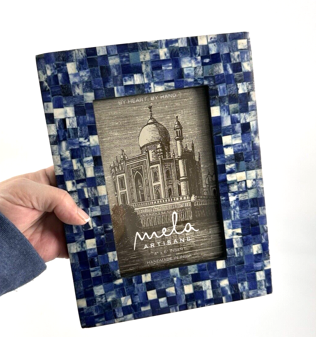 The Mela Artisans Indigo Hand Painted Photo Picture Frame is a contemporary designer piece featuring small indigo tiles in various shades of blue, creating a beautiful abstract pattern. Made by artisans in India, this 4x6 frame has a rear-loading photo insertion and a matte finish. The frame measures 8.5 inches in height, and 6.5 inches in width, with a portrait orientation and clear glass. This unique and stylish frame is suitable for all occasions and would make a stunning addition to any home decor. Great condition. Artist signature on back in metal. You will receive the picture frame that is in the picture. If you are new here, you may see if other items that will be listed this week or next week. So, you get a sneak peak of what is coming up next! :)!! Here is my Ebay shop: YouBeYou LLC If you have any questions even after you have purchased the item --- I am here for you to answer any questions that you may have! I strive to work diligently with every buyer to ensure they are a satisfied buyer, so please contact me anytime. This is a pre-owned item and I take great care to accurately describe the item but please see the pictures for full details. While we do our best to list every item in detail, these are vintage and pre-owned items, and some flaws are to be expected. Please see all photos/ video as they are a large part of the description of our items. Items come from a smoke-free environment. Each item is described in accurate detail with multiple measurements and various photos at different angles front and back, side to side, top and bottom. I have additional similar items that I have yet to list that you may be interested in. Feel free to follow my store ( YouBeYou LLC ) to see those when posted. Please see all photos/ video as they are a large part of the description of our items. I strive to make every purchase a pleasant experience. Please feel confidence in you purchase that I'll make every effort to correct any issues that may arise. If used, there are always some signs of wear -- well, because it is used, vintage, or antique. Most items are used -- Each item is inspected for quality. It is very important to us that you have a happy Ebay experience! Thank you for supporting a small business like ours! (Note: pictures may include measurements, and some have a video.)