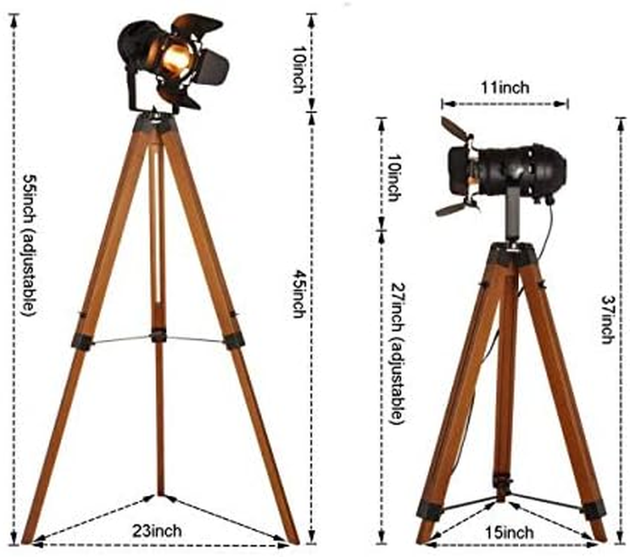 Store New Arrivals Add to Favorite View Feedback Contact Industrial Floor Lamp for Living Room Tripod Wood Standing Tall Lighting Black Adjustable Cinema Metal Lampshade Studio Lights E26 Farmhouse Retro Floor Lamps for Bedroom Office Reading Description Item model number tripod floor lamp Light Source Type No included bulb Style Modern Number of Items 1 Power Source Corded Electric Number of Light Sources 3 Control Method Touch Switch Type Foot Batteries Included? No Lighting Method incandescent Lamp Type Floor Lamp Number of Pieces 1 Room Type Office, Living Room Bulb Shape Size A19 Installation Type Tabletop,Freestanding Product Dimensions 23"D x 23"W x 55"H Material Wood, Metal Efficiency inefficient Finish Type Black Finish Indoor/Outdoor Usage Indoor Bulb Base E26 Water Resistance Level Not Water Resistant Connectivity Protocol Homeplug Item Weight 3.9 Kilograms Connectivity Technology USB Special Features adjustable Special Feature adjustable Part Number vintage floor lamp Shade Color Black Mounting Type Floor Mount Color Black Wattage 60 watts Is Cordless? No Base Material metal,wood Is Waterproof False Shape Bulb Voltage 110 Volts Batteries Required? No Shade Material metal,wood Finish types Black Finish Included Components Shade Size Tripod floor lamp INDUSTRIAL STYLE: Add a stylish touch to any room of your home with this lamp. Perfect for urban lofts and studio living, this versatile lamp showcases a unique camera lampshade. It’s built on sturdy wooden legs, lending durability to this lighting. When you add this floor lamp to your room, you instantly incorporate contemporary charm into your space. ADJUSTABLE TRIPOD FLOOR LAMP: features a classic black finish lampshade and a walnut tripod lamp. The height is adjust from 37 inch to 55 inch. The angle of lamp hand is 360 degrees rotation in left right and 180 degrees in up down. QUICK TO ASSEMBLE AND CLEAN: Includes step-by-step instructions for easy assembly and cleaning. PROVIDES VERSATILE LIGHT: Tripod design and adjustable head provide a multi-use lighting solution for reading or to add a soft glow to your bedroom, office, or living area. FOOT PEDAL: The industrial tripod floor lamp comes with a foot pedal switch, no need to bend down to turn on/off. The cable lebgth is 110 inch. The tripod floor lamp uses a 60-watt type e26 base, 110v bulb (not included). Product Description Cinema Adjustable Tripod Floor Lamps for Living Rooms Industrial Decor Spotlight Movie Retro Wood Lamps A Set Vintage Industrial Table Lamp for Choice ABOUT US We’re dedicated to bringing you great deals on quality products. From home décor and garden essentials to tools, hardware, and pet accessories, our store has something for everyone — all at prices you’ll love. SHIPPING We ship all orders directly from the USA for fast, reliable delivery. Most items ship within 1 business day and include free shipping to the lower 48 states. For international orders, we use eBay’s Global Shipping Program — simply continue checkout to see costs, duties, and taxes for your country. FREE RETURNS We offer a 30-Day Return Policy on items which you are not completely satisfied with. You have the option for a full-refund or an exchange of the item. CUSTOMER SATISFACTION We do everything we can to ensure every customer is 100% satisfied. If something isn’t right, just send us a message — we’ll make it right quickly!