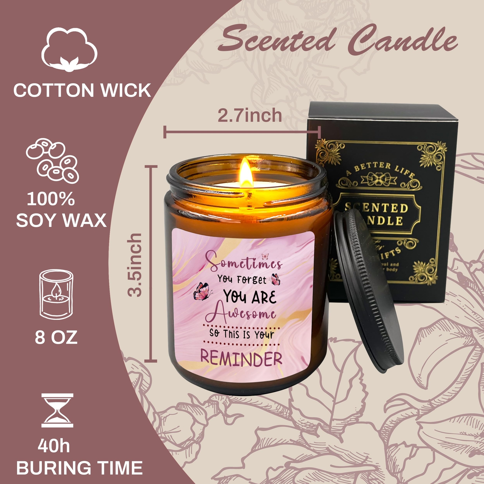 Scented Candles have some quotes an artistic pattern design and Some light, musky cologne will stunning the party, make everyone laugh and impress their memory,I believe it would make a good choice as a gift! 1.【ROMANTIC LOVE GIFTS FOR WOMEN&MEN】 The Scented Candles with some quotes an artistic pattern design, make it be a really great and unique gifts for women, wife, girlfriend, husband, boyfriend, mom, dad, him, her, best friend, sister, grandma,etc.. gifts for her, gifts for him,You can bet anyone would be happy receiving this candle. 2.【PLEASANT & RELAXING SMELL】 Added 5% Cologne essential oil in precise proportions, candles smell awesome but not overpowering, which is excellent to create a peaceful, soothing, and elegant ambiance that will help people relax and feel happy. This aromatherapy candle was produced for purification, stress relief, anxiety soothing and positive energy providing. 3.【100% SOY WAX, LONG BURNING】The soy candle for its reduced soot while burning. candles can last up to 40 hours.The Cologne is smell nice. It comes in a beautiful black gift box,You can bet anyone would be happy receiving this candle. 4.【TAKE GIFT-GIVING TO THE NEXT LEVEL】Our amber jar candles are packaged in a stylish box to make your loved ones smile before they even open it. Whether they are halfway across the world or just a few minutes away, our fun candle makes the perfect gift for anyone you care about and is the perfect reminder of your love. 5.【CLEAN BURNING AROMATHERAPY CANDLE】free of paraffin and harmful substances.There is no irritation or toxicity to pets. Enjoy the rich aroma of plants with all your family.