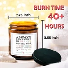 Scented soy candle is clean and environmentally friendly, the wax can be easily washed out of the jar with hot soapy water, and the jar can be reused or recycled.Storage life is three years, please do not expose, store in a cool place. PERFECT GIFT:This unique gift is perfect for birthdays, Mother's Day, Thanksgiving, Christmas, Easter, Valentine's Day, thank you gift, holiday, Christmas, retirement gift, inspiration gift. SOY WAX: Scented soy candles for home scented is made of natural soy wax, which provides a slower and cleaner burn than paraffin, and makes it burn even and smokeless. LONG-TIME SMOKELESS BURNING: The scented candle lasts for about 47 hours. Lavender scent, suitable for home, bedroom, bathroom, living room, office, yoga time, etc. INDOOR USE: This scented soy candle is an ideal addition for any home or office use. Display this jar candle in your bathroom, bedroom, kitchen, living room, foyer, loft or basement, and start enjoying a day bathed in the sweet fragrance, which can help you get rid of negative emotions, a good mood would come naturally. NOTE: Please Keep this candle away from flammable objects when burning and put it on a flat surface.