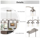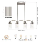 Return Policy Fast Delivery Trusted seller Island Lights for Kitchen, Modern Dining Room Light Fixture 4 Lights, Brushed Nickel Chandeliers for Dining Rooms Over Table Classic Linear Pendant Lights Kitchen Island with Clear Glass Product Description 【Exquisite Design】This island light showcases an exquisite design that combines elegance and modernity. The carefully crafted shape and delicate lines add a touch of sophistication to any space. Its unique form makes it a true centerpiece, catching the eye and creating a focal point in the room. For example, the gently curving arms or the clear glass shade can give the lamp an artistic appeal 【Adjustable Height for Versatility】Consisting of 4 adjustable hanging bar(MAX 50 inch, MIN 20 inch), this pendant lights covers various needs of ceiling height. Adding cozy and exquisite luxury to you house, perfect for the dining room lighting fixtures hanging, kitchen island, living room, pool table light, hallway, entryway, bar pendant light, corridor, foyer, etc 【Durable Quality and Easy Install】Constructed with superior quality materials, this chandelier ensures durability and longevity. This kitchen island lighting comes with all mounting hardware for easy installation and sloped/flat ceilings avaiable.You'll be able to enjoy the beauty and romantic atmosp of this lamp in no time 【Bulb Requirement】This kitchen island light fixture requires 4 pcs E26 base of any type LED/CFL/other bulbs(Max.60W). Fully dimmable when use a dimmable bulb and compatible dimmer switch to create a comfortable atmosp(Bulb and switch not included) 【After-Sales Support】Buy with confidence, we proudly provide a 2 years warranty. The kitchen chandelier include 4 glass shades, if the glass is broken in transit, you can contact the store to send you a replacement glass shade. We offer a full one-year warranty and excellent customer service for our island light fixtures. Any problems, please contact our seller, we value our every customer's shopping experience 【☀Widely Use】The stunning charming look contemporary chandeliers pendant light is great for casual spaces, residential houses,office or any commercial areas Shipping Returns Payment Shipping Shipping is FREE to all addresses other than APO/PO boxes in the lower 48 states. All our stock ships from US-based warehouses. Shipped via USPS or UPS (depending on location and package weight) Unless stated otherwise, all orders will ship within 24-72 hours of your payment being processed. Check our feedback to see the great reviews of FAST shipping we offer. Returns Seller does not accept returns Payment We currently accept payment via eBay managed payments only. Once payment is cleared, we will dispatch your shipment within 1-3 business days. Please refer to the "Shipping" tab for more information regarding shipping speed to your destination.
