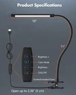 JHD LED Desk Lamp with Clamp - Adjustable 3 Color Modes 10 Brightness Level Table Lamp, USB Eye Caring Flexible Gooseneck Desk Light for Home Office, Dorm Room, Reading, Nail, Clip On Light, Black Product Details Style: Desk Light Bar Brand: JHD MPN: PLD612 UPC: Does not apply EAN: Does not apply Finish Type: Painted Base Material: Aluminum Product Dimensions: 5.1"D x 2.9"W x 19.5"H Item Weight: 11.2 ounces Lamp Type: Desk Lamp,Book Light,Night Light,Mood Lamp,Wake Up Light,Table Lamp Product Dimensions : 5.1 x 2.9 x 19.5 inches; 11.2 ounces Item model number : PLD612 Date First Available : September 1, 2023 Manufacturer : JHD Country of Origin : China Customer Reviews: 4.3 4.3 out of 5 stars 1,227 ratings Finish Type: Painted Base Material: Aluminum Product Dimensions: 5.1"D x 2.9"W x 19.5"H Item Weight: 11.2 ounces Lamp Type: Desk Lamp,Book Light,Night Light,Mood Lamp,Wake Up Light,Table Lamp Shade Color: black Shade Material: Aluminum Switch Type: Dimmer Style: Desk Light Bar Brand: JHD Color: Black Special Feature: Space-Saving, Dimmable, Firm Clip, Flexible Gooseneck, Adjustable Arm, Eye-Caring, Energy Efficient, Portable, USB Charging Port,10 Brightness Levels, Widely used for bed, headboard Light Source Type: LED Material: Anti-blue light LED, Metal Room Type: Kitchen, Bedroom, Living Room, Kids, Nursery, Bathroom, Home Office, Dining Room Recommended Uses For Product: Reading, Decoration Power Source: Corded Electric Shape: strip Controller Type: Push Button Number of Light Sources: 1 Connectivity Technology: USB Included Components: 1*Clip on Light, 1*User Manual, Plug Adapter Not Included Age Range (Description): Adults/Children Is Waterproof: False Mounting Type: Tabletop,clamp light Cartoon Character: Desk Lamp With Clamp ,Table Lamp Wattage: 5 Watt-hours Number of Items: 1 Lighting Method: Uplight Control Method: Touch Indoor/Outdoor Usage: Indoor Specific Uses For Product: Bedroom Lighting, Reading Lighting, Office Lighting, Work Lighting, Headboard Lighting Water Resistance Level: Not Water Resistant Installation Type: Tabletop,clamp light Number of Pieces: 1 Voltage: 110 Volts Brightness: 180 Lux Is Cordless?: No Size: 5.1"x2.9"x19.5" Manufacturer: JHD Part Number: PLD612 Country of Origin: China Item model number: PLD612 Finish types: Painted Maximum Compatible Wattage: 5 Watt Hours Special Features: Space-Saving, Dimmable, Firm Clip, Flexible Gooseneck, Adjustable Arm, Eye-Caring, Energy Efficient, Portable, USB Charging Port,10 Brightness Levels, Widely used for bed, headboard Batteries Included?: No Batteries Required?: No Bulb Features: book light, desk lamp, clip on light, reading light Color Temperature: 4000 Kelvin Color Rendering Index (CRI): 80.00 Average Life: 30000 Hours Bulb Diameter: 27 Centimeters Bulb Length: 27 Centimeters Date First Available: September 1, 2023 3 Light Modes & 10 Brightness LevelsThe small desk lamp offers warm, cool, and natural light modes with 10 adjustable brightness levels (10%-100%). It provides long-lasting, stable, and flicker-free illumination for different settings. The high-quality LED office lamp beads ensure even brightness, soft light, wide coverage, and better light transmission, with a lifespan of up to 50,000 hours Stable Clamp & 360 GooseneckThis clamp light is made of metal and features a non-scratch foam clip that opens up to 2.36 inches (5cm), allowing it to securely attach anywhere (desks, computer tables, headboards, etc.). The 360 flexible gooseneck clip light can bend to any angle and shape, offering strong support and flexibility without being constrained by space USB-Powered Table LightThe universal USB plug-in design makes charging easy. This USB light can be powered through a USB socket, power bank, or computer, making it energy-efficient and ideal for workers and students (dorms) Memory FunctionWhen you turn off the usb lamp, it will automatically remember the brightness and mode of the last time it was used, without the need to adjust it again until the power is cut off Versatile UseWith its simple design and compact structure, this clamp lamp takes up minimal space and can be used in various settings. desk lamps for home office, college dorm room, nail art, children's study areas, hobby painting, computer screen lighting, sewing machines, and workspaces CustomerSupportJHD provides year-round hassle-free service, if you encounter any problems, please feel free to contact us to get the best solution to solve the problem