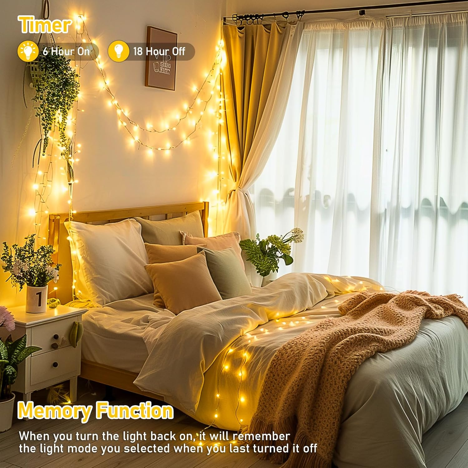 【Widely Used Warm White Christmas Lights】 Revel in the enchanting glow of our warm string lights, boasting an impressive length of 59 feet and 150 LEDs. Whether adorning your bedroom, patio, garden, or balcony, these lights cast a radiant glow that captivates hearts and transforms any setting into a mesmerizing wonderland. Perfect for Christmas, weddings, parties, birthdays, or simply adding a cozy ambiance to your everyday decor, they're sure to become a staple in your home all year round. 【8 Modes & Memory & Timer Functions】 Experience versatility at its finest with 8 dazzling lighting modes, including steady-on and various flashing options. Plus, our warm white indoor string lights's innovative memory function ensures that your preferred mode is retained, while the timer feature allows you to effortlessly schedule the illumination to suit your schedule, creating an atmosphere that's both magical and convenient. 【Waterproof & Safe plug in string lights】 Crafted with durability in mind, our warm white Christmas lights are IP44 waterproof rated, guaranteeing resilience against the elements for year-round enjoyment. Plus, with UL-certified safety standards, you can rest assured that these lights are safe to use, bringing peace of mind to your festive celebrations. 【Connectable Christmas String Lights】 Elevate your decor game with the flexibility of connecting multiple light strings, allowing you to extend the magic across larger areas with ease. Whether draping them around your Christmas tree indoors or weaving them through your yard outdoors, these warm white Christmas lights add a touch of elegance and warmth to any space. 【Energy-Efficient & Long-Lasting】Enjoy the beauty of warm white lighting without the worry of high energy costs. Our outdoor string lights are designed with energy efficiency in mind, utilizing LED technology that consumes less power while providing brilliant illumination. Not only do they save on electricity bills, but they also boast a long lifespan, ensuring you can enjoy their enchanting glow for many seasons to come. Invest in lighting that is both beautiful and sustainable, brightening your spaces in an eco-friendly way. Product Description Step into a world of enchantment with our stunning 59ft 150 LED warm white string lights. From cozy indoor gatherings to festive outdoor displays, let the radiant glow of our lights cast a spell of magic over your surroundings. The video showcases the product in use. The video guides you through product setup. The video compares multiple products. The video shows the product being unpacked. Warm white string lights have multiple modes and multiple functions to meet your decoration needs in various scenes and enhance the atmosphere. Versatile Lighting Modes Experience the versatility of our LED string lights with 8 enchanting lighting modes. From the gentle flow of waves to the playful chase of flashing lights, each mode offers a unique ambiance to suit any occasion, provide effortless customization for all your lighting needs. Waterproof Design for Outdoor Use Our lights feature a waterproof design, ensuring they can withstand outdoor conditions such as rain or snow. Whether decorating your garden, patio, or porch, you can trust our lights to shine brightly regardless of the weather. Connectable Design for Flexible Decorating With the ability to connect up to 5 strands, you can effortlessly extend the reach of your lighting display, whether you're adorning your Christmas tree or embellishing your outdoor space. Create a seamless and enchanting ambiance that reflects your unique style and vision. Effortless Timer Function Take the hassle out of managing your lights with our timer function. Press and hold the button on the plug until it turns green to turn on the timing function: 6 hours on, 18 hours off. Enjoy hassle-free lighting control for added convenience. Versatile Application, Perfect for Every Occasion Whether it's decking out your Christmas tree, brightening up your patio for summer gatherings, or adding flair to a party, these lights are the ideal choice for all your indoor and outdoor decoration. Radiate Warmth Throughout Your Home Whether adorning your living room, bedroom, or any other area, our lights create a cozy atmosphere that welcomes friends and family, making every moment special. Transform Your Christmas Tree Enhance the magic of the holiday season with our lights designed specifically for Christmas trees. Create a captivating display that perfectly complements the spirit of Christmas. Set the Scene for Outdoor Gatherings With our lights illuminating your yard, create a warm and inviting atmosphere that encourages relaxation and fosters memorable moments with friends and family. Adorn Your Home with Radiance Adorn your house exterior with a dazzling array of lights, casting a warm and inviting glow that spreads holiday cheer throughout your neighborhood. Using Tips - Control Modes and Timer Easily: Adjust the modes and timer function effortlessly using the button on the adapter. - Timer Activation: Long press the button for 3 seconds to activate the timer. The LED indicator on the adapter will turn green. To cancel the timer function, simply long press again. - Keep Plug Dry: Please note that the plug is NOT waterproof. Keep it dry and avoid moisture to ensure optimal performance.