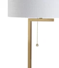 Linear and modern, the clean lined design of this contemporary table lamp adds chic simplicity to any space. With a pull chain to illuminate the single bulb (LED ! ), a matching finial, and marble disc base, the design checks all the boxes of a versatile modern accent. The style extends all the way to the plug with our silk wrapped cord. QUALITY CONSTRUCTION: table lamps designed to illuminate your home, stylish addition to any room; included LED bulbs and our lamps fit standard light bulbs too! ETL Listed and meets 120-volt UL standards for safety and quality ENERGY-SAVING LED BULBS INCLUDED: with Alexa smart outlets (sold separately), our sturdy LED bulbs will still last multiple years; high-quality LED bulbs are an energy-saving upgrade over standard incandescent bulbs SATISFACTION GUARANTEED: Every design is created with uncompromising attention to detail, using only the highest quality components; Based in Soho, New York, designer Jonathan and his talented team create affordable high-end home decor This fixture is topped with a matching brass finial On-off pull chain switch