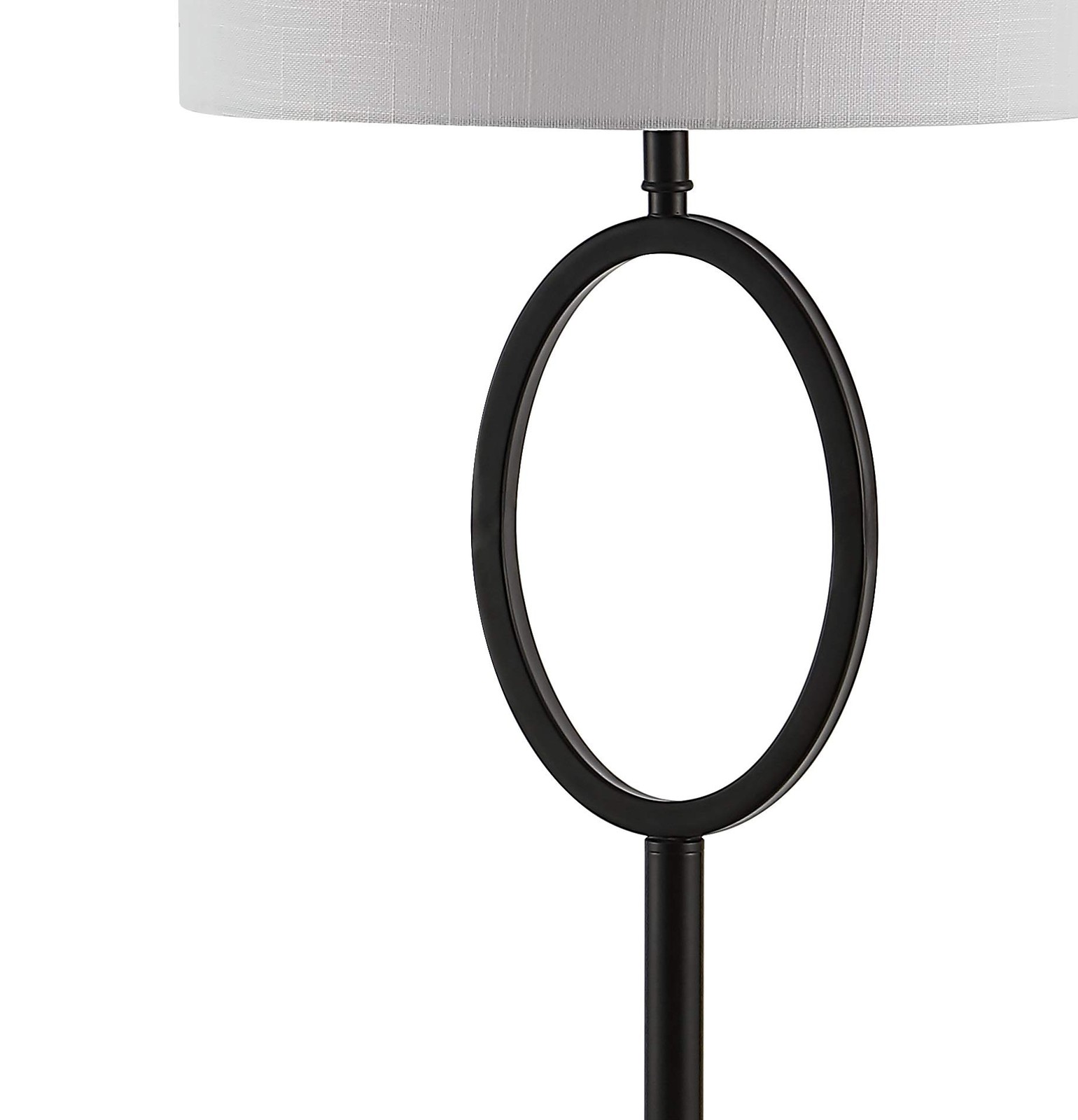 QUALITY CONSTRUCTION: table lamps designed to illuminate your home, stylish additio; included LED bulbs and our lamps fit standard light bulbs too! ETL Listed and meets 120-volt UL standards for safety and quality ENERGY-SAVING LED BULBS INCLUDED: LED bulbs provide soft, flicker-free lighting; LED bulbs have a lifespan of 25,000 hours; Will still last multiple years; Our high-quality LED bulbs are an energy-saving upgrade SATISFACTION GUARANTEED: Every design is created with uncompromising attention to detail, using only the highest quality components; Based in Soho, New York, designer Jonathan and his talented team create affordable high-end home decor Standard oil rubbed bronze floor lamp base is punctuated with a stylish hoop design 100% cotton hardback drum shade