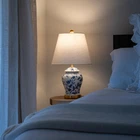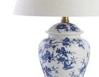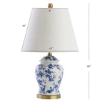 This ginger jar lamp is hand-painted and glazed with antiqued brass ornamentation. The tapered linen hardback shade adds quiet grandeur to the traditional design. Finished with a brass finial on the top and a silk-wrapped cord in the back, it's the perfect addition to your traditional space. This item is sold as a set of two. QUALITY CONSTRUCTION: table lamps designed to illuminate your home, stylish addition to any room; included LED bulbs and our lamps fit standard light bulbs too. ETL Listed and meets 120-volt UL standards for safety and quality ENERGY-SAVING LED BULBS INCLUDED: Compatible with Alexa smart outlets (sold separately), our sturdy LED bulbs will still last multiple years; high-quality LED bulbs are an energy-saving upgrade over standard incandescent bulbs SATISFACTION GUARANTEED: Every design is created with uncompromising attention to detail, using only the highest quality components; Based in Soho, New York, designer Jonathan and his talented team create affordable high-end home decor Chinoiserie chic, this hand-painted ginger jar lamp base fits seamlessly with traditional décor 100 percent cotton hardback tapered drum shade