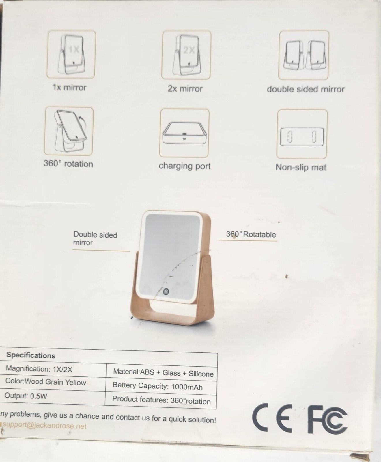 This Jack & Rose LED Wood Style Make Up mirror has may practical features. It comes with LED lighted and Magnification, double sided with 360 degree rotation, a charging port with usb connector and a non-slip mat for tabletop use. SHIPS USPS PRIORITY TO GET TO YOU ASAP!!
