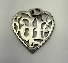 James Avery Signed & Marked Sterling Sweet Sixteen Heart Charm Beautiful Detail: Flowers, Leaves & Vines Retired 3/4" x 3/4" 1.79 g