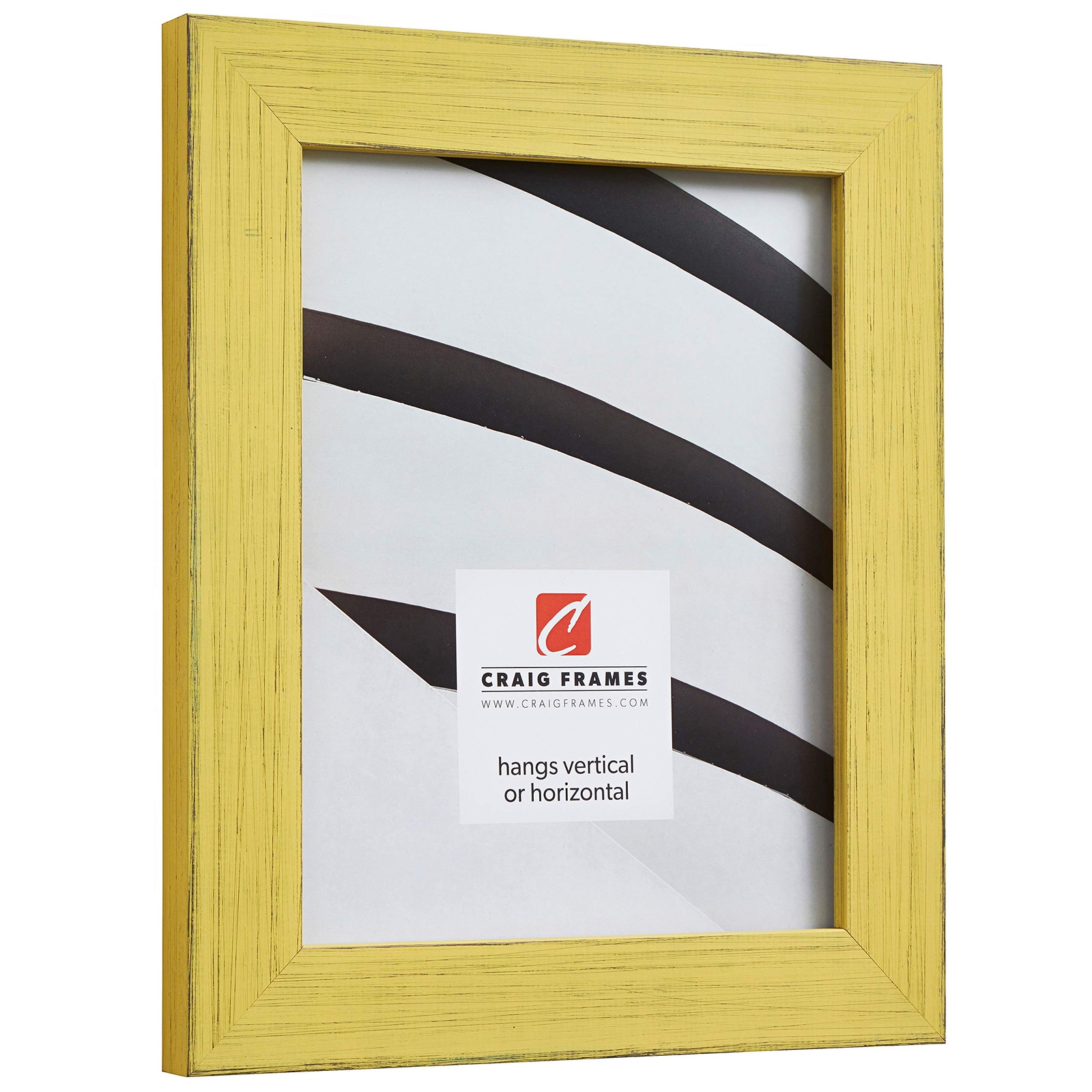 Rustic style; weathered yellow with visible wood grain; painted finish **IMPORTANT** THIS IS A NATURAL WOOD PRODUCT. WE CANNOT CONTROL VARIATIONS IN COLOR OR GRAIN PATTERN. Frame includes: glass, rigid black backing and pre-attached stamped hanging hardware Frame holds a 9 x 12 inch photo/print/poster (viewable area reduced by .25" on each side due to frame lip) Frame moulding is 1.5 inches wide; solid wood construction Frame is designed for WALL HANGING only (hanging hardware allows for portrait or landscape orientation)