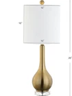 JONATHAN Y JYL5010A Dylan 25" Metal/Crystal Teardrop LED Single, Brass Gold Product Details Finish Type: Painted Base Material: Crystal Bulb Base: E26 Product Dimensions: 10"D x 10"W x 25"H Item Weight: 3.52 Pounds Lamp Type: Table Lamp Shade Color: White Shade Material: Linen Switch Type: Rotary Style: Contemporary, Transitional, Traditional, Classic Brand: JONATHAN Y Color: Brass Gold Special Feature: Corded Light Source Type: LED Material: Metal, Crystal Room Type: Office, Entryway, Bedroom, Living Room, College Dorm Recommended Uses For Product: for Bedroom, Living Room, Office, College Dorm, Coffee Table, Bookcase, Reading, Decoration Power Source: Corded Electric Shape: Drum Number of Light Sources: 1 Connectivity Technology: USB Included Components: 1 Lamp, 1 Bulb Is Waterproof: False Bulb Shape Size: A19 Mounting Type: Tabletop Wattage: 60 watts Number of Items: 1 Lighting Method: Adjustable Control Method: Touch Indoor/Outdoor Usage: Indoor Specific Uses For Product: Indoor use only, Decoration Installation Type: Countertop Number of Pieces: 1 Efficiency: High (in comparison to incandescent table lamps) Voltage: 120 Volts Base Diameter: 5.75 Inches Brightness: 800 Lumen Is Cordless?: No Size: Single Manufacturer: JONATHAN Y Part Number: JYL5010A Item Weight: 3.52 pounds Country of Origin: China Item model number: JYL5010A Finish: Painted Pattern: Solid Item Package Quantity: 1 Cutting Diameter: 10 Inches Special Features: Corded Batteries Required?: No Assembled Diameter: 10 Inches Finish Type: Painted Base Material: Crystal Bulb Base: E26 Product Dimensions: 10"D x 10"W x 25"H Item Weight: 3.52 Pounds QUALITY CONSTRUCTION: JONATHAN Y table lamps designed to illuminate your home, stylish addition to any room; included LED bulbs and our lamps fit standard light bulbs too! ETL Listed and meets 120-volt UL standards for safety and quality ENERGY-SAVING LED BULBS INCLUDED: Compatible with Alexa smart outlets (sold separately), our sturdy LED bulbs will still last multiple years; high-quality LED bulbs are an energy-saving upgrade over standard incandescent bulbs Mid-century-inspired teardrop base in brass adds a functional metallic element to any space 100% linen hardback drum shade The refined teardrop shape of this 25 inch brass-plated table lamp, combined with a classic linen drum shade, create a compelling blend of traditional and contemporary design that is well suited to a variety of design styles. Accented with chrome-plated fittings, a crystal base and a finial to match, the clean lines of this light fixture will add a fashionable and functional touch to any home.
