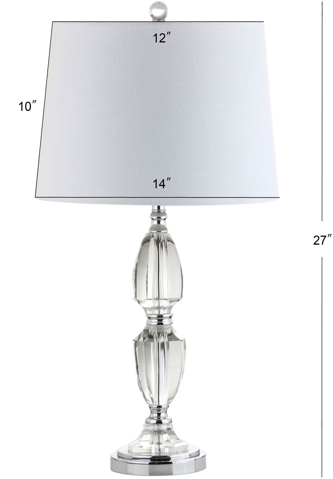 This lamp is a stunning addition to any room! The chrome finish and crystal details give it a sleek, elegant look, while the cotton shade softens the light beautifully. The included LED bulb provides warm, inviting illumination, and the on/off switch makes it super convenient. Perfect for a buffet table, nightstand, or console—adds instant sophistication!