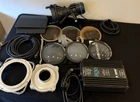 Items included: 800w joker bug with beamer 800w HMI SE globe (in head) 4 way barn doors 25ft feeder cable electronic ballast Clear beaker (in head) Frosted beaker 7 3/4" chimera speed ring Joker bug twist lock speed ring 1 Wide lens 1 Super wide lens 1 Medium lens Lens/scrim bag 2 double scrim 1 single scrim Carrying case This K 5600 Joker-Bug 800W HMI Kit can operate in any position. Joker-Bug draws only 11 amps allowing for a 400W to be used on the same circuit. The light will produce as much output as a 4,000 Watt quartz fixture. The Joker-Bug 800W kit fits in one airline case and weights only 38 lbs. In the Bug-Lite mode (without optics) the lights are used as traditional light banks. It is also used as a lantern using the sides as a large reflector and collecting the max output of the lamp. This allows it to fill the front screen very evenly. The 800 Watt and 400 Watt fixtures are very powerful in daylight interiors and can operate in any position including pointing straight down. The Joker is in Joker-Bug mode is when the Beamer Optical Accessory is in use. It becomes a directional PAR unit offering various beam patterns through quick lens changes.