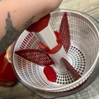 Spins great, the whole setup is in good shape has small marks on bowl from spinning ,small marks on bottom of bowl. Check pictures.