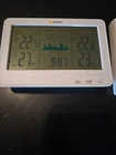 The KJ Cooswl Thermometer is a digital programmable thermostat powered by batteries, designed for indoor and outdoor use. It includes a wireless sensor for monitoring temperatures both inside and outside of a home or other space. The thermostat is white in color and does not have cool stages, making it a simple and practical option for controlling temperature settings efficiently. Its programmable feature allows users to customize temperature settings based on their preferences and schedules.