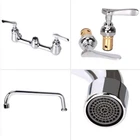 KWODE commercial faucet provides a practical experience on your kitchen tasks.Lead free brass constructed, chrome polish finish and long life.Widely used for commercial kitchen, Restaurant, Industrial etc. Features: *8 inch adjustable center commercial faucet: This faucet mounts to the wall using a pair of 1/2 NPSM female inlets with 2” flanges. Those inlets can adjust from 7.95" to 8.34", please keep each gasket in your female thread when install. *Equipped with a sturdy copper core for durability. Chrome polished, easy to clean. *Backsplash mount installation kit: Use wall mount installation kit, it can save you a lot of space. If you need, please search for this asin:B08BFPYHL6. *Commercial faucet with 10 inch swivel spout, the swing nozzle spout can be rotated 360 degree by hand. *Easy to remove aerator and change the spout: 10 inch swivel spout connector size is M25*1.25MM, its aerator connector size is M22*1MM. We have sold different length spout, please search " KWODE Faucet". *Connected with pre-rinse hose and spray valve: We have sold this pre-rinse hose with spray valve ( connected adapter inside) to connect the spout. The ASIN is B08BFG71LZ. Specification: Material: Brass Spout Height: 5.3 in Spout Reach: 10 in Add on Spout: 10" Spout Type: Swing Spout Finish Type: Chrome Polished Installation Type: Wall Mount/Back Splash Mount Thread Type: G1/2 female inlets Flow Rate: 2.2 GPM Handle Control: 2 handles Water Supply: Hot and Cold water supply Water Pressures: Min 0.5 bar, 1.0 bar recommended Packing includes: 1*Faucet Body 1*Swing Nozzle 2*G1/2 Connector 2*Female Eccentric Flange 1*Spare Parts 1* English Manual Note : Before purchasing, please confirm that your water supply system is G1/2 interface. Heavy Duty Commercial Sink Faucet: 2.2 GPM Max water flow. Lead free brass constructed with superior rust-resistant, chrome polished finish. Easy to clean and long lifespan. 360°Swing Nozzle Spout: 360 degree swing nozzle spout, it can reach all the sink places, adding convenience during kitchen tasks. Suitable for any irregular size of your 1 or 2 holes prep & utility sink or wall water supply. Frequency Working Together: Our Faucet is often used on 3 bay compartment sinks together with 25" or 36" Height commercial kitchen faucet.