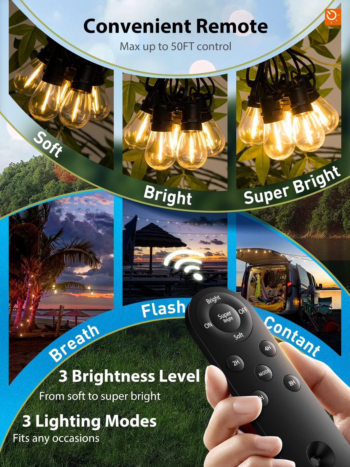 KYY 54FT Solar String Lights Outdoor Waterproof with USB Charging & Remote, Dimmable & Timable, Solar Powered Patio Lights with LED Shatterproof Bulbs for Deck Backyard Porch Garden Camping Remote Control: Easily change brightness, color temperature, and light mode from the included remote control. Long Battery Life: Get up to 30+ hours of use from a single 8-hour charge thanks to the high-performance battery. Solar & USB Charging: The solar panel charges the battery during the day, while the USB port allows for quick top-ups when needed. Versatile Installation: Use ground plugs or screws to mount the lights on a lawn or wall, and adjust the angle with the included stand. Durable & UL Certified: With double shell protection and over 10,000 hours of testing, these lights are built to last and safe for outdoor use. Shipping We offer FREE shipping on all orders! We ship within Three business days of payment, usually sooner. We use a selection of shipping services such as UPS, FedEx, USPS etc. We only ship to the lower 48 states, no APO/FPO addresses or PO Boxes allowed. Local pickups and combined shipping options are not provided at this time. Return You can return a product for up to 30 days from the date you purchased it. Any product you return must be in the same condition you received it and in the original packaging. Please keep the receipt. Payment We accept payment by any of the following methods: PayPal Please pay as soon as possible after winning an auction, as that will allow us to post your item to you sooner! Feedback Customer satisfaction is very important to us. If you have any problem with your order, please contact us and we will do our best to make you satisfied. Contact Us If you have any queries, please contact us via ebay. We usually respond within 24 hours on weekdays. Please visit our eBay store to check out other items for sale! Thank you for shopping at our store.