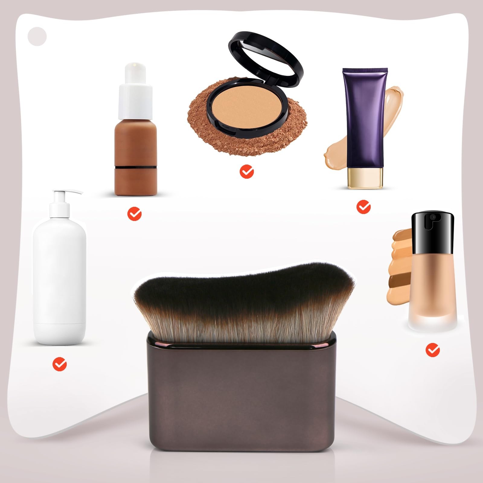 UNIMEIX Self Tanner Brush Sunscreen Body Makeup Brush Kabuki Blend Applicator Spray Tan Blending Beauty Brush for Body Coverage Perfector (Gray) BRONZER BRUSH & SELF TANNING BRUSH - This bronzer brush is made of ultra-fine soft high-density synthetic bristles and a shiny ABS handle. The handle is easy to hold, so you don't have to worry about the body brush falling and getting dirty during use. DENSE BRISTLES - With over 20,000 soft and dense bristles, the self tanner brush is durable, flexible, and prevents shedding, which can reduce the absorption of tanning lotion, easy to clean, and maintains good shape and structure after long-term use. PERFECT FOR FACE AND BODY MAKEUP - This body makeup brush can apply any type of tanning product/makeup, such as foundation, powder, liquid powder, concealer, cream, blush, contour and body glitter, quickly and accurately create a natural makeup. NO-MARK TANNING - The tanning brush is designed to fit the curves of your legs, arms and body. The unique curves and bristles provide perfect coverage, helping you quickly apply tanning products to your face or back without leaving any marks. In just 10 seconds, you can create a smooth, natural and flawless natural bronze complexion. MULTI-PURPOSE - The self tanning brush can be used alone as a makeup brush, or with mittens and tanning gloves, perfect for applying tanning cream to the body , tanning, leg makeup and perfect concealer.