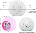Kids Alarm Clock,Moon Stars Projector Clock,7 Color Changing Night Pink Product Details Brand: Tarklanda Color: Pink Display Type: Digital Style: Modern Special Feature: Snooze, Temperature Display, Alarm Product Dimensions: 3.5"W x 4"H Power Source: Battery Powered Age Range (Description): Kid Room Type: Bedroom Shape: Round Indoor/Outdoor Usage: Indoor Material: Plastic Theme: Rainbow Frame Material: Acrylonitrile Butadiene Styrene Are Batteries Included: No Mounting Type: Tabletop Number of Batteries: 3 Unknown batteries required. Alarm Clock: Yes Watch Movement: Automatic Number of Items: 1 Operation Mode: Atomic Manufacturer: Tarklanda Item Weight: 3.52 ounces Batteries: 3 Unknown batteries required. Batteries required: No 【7 Color Night Light】This kids alarm clocks has 7 rainbow color night light, It can be used as a wake up light, multicolored night lights, mood night light, atmosphere lighting,kids bedroom clocks, and will reflect the stars and moon. 【Materials】The pleasant-looking kids alarm clock is made of high-quality ABS material, It is safe for kids. You can enjoy a peace of mind while for children using. 【Easy to Use】The setting of this alarm clock for bedroom is done by 4 buttons, By touch above of the clock for kids, The night light can be turned on&off easily.We will give a manual, you can adjust the time and date. 【 Room Decor】The kids alarm clock makes it an elegant decoration even if you don’t need to use it. This kids digital clock is operated by 3 pcs 1.5V AAA batteries (without battery included in the package), So you can put it anywhere in the room. 【Good Gift 】Moon star small alarm clock luminous stars and moons to decorate your child's room and create a beautiful starry night. This will bring a lot of fun to your child.The alarm clock is very suitable for children, such as children’s birthday, Children’s Day, Christmas, New Year, Thanksgiving.
