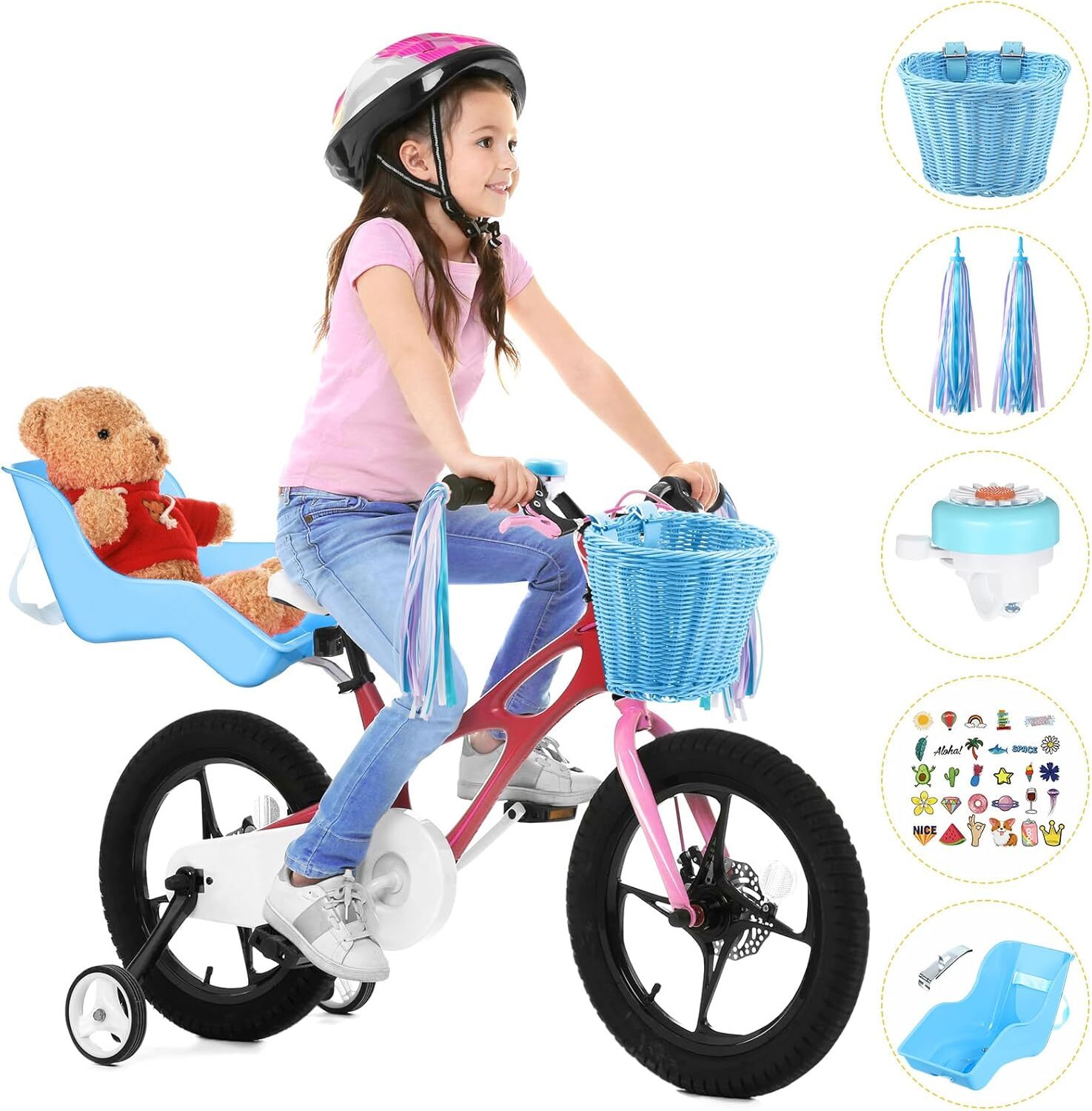 Free eBay listing template designed by dewiso.com Doll Bike Seat with 30 Pcs Stickers Decals Bike Basket for Kids Bike Handlebar Streamers Colorful Ribbons Tassel Daisy Bike Bell for Girls Boys Bike Accessories Christmas Kids Gift FREE AND FAST SHIPPING! About this item Lovely and Cute Bike Accessories: the bike decoration accessories kit contains 1 doll bike seat with stickers, 1 kid's wicker bike basket, 2 straps of colorful bike handlebar streamers, 1 bicycle bell and 30 pieces of lovely stickers, making kid's bicycle beautiful and attractive Practical and Strong Accessories: the wicker bike basket is hand woven with long lasting durability, which can hold water bottle, tissue, hat and other items when going out riding; The bike bell can deliver a crisp and clear ringtone, loud enough to catch the attention of pedestrians and remind them to make kid's way Attractive Bicycle Decoration: the bicycle basket streamers set will give your kid's bike a fresh look, the colorful bike handlebar streamers will dance along with the wind when riding the bike, attracting the attention of other people Ideal Gift: the kids bicycle decorations set can serve as an ideal gift for your kids on birthday, Christmas, Children's Day and more, they will be very excited to receive such a nice present; You can enjoy a happy and warm parent child cycling trip with your kids Fun to DIY: with the various stickers and decals, your kids, and you will have fun decorating the bikes with imagination and creativity, you can stick the decals on different places or combine different patterns to make your own beautiful bicycles Product We offer a 30-Day Return Policy on items which you are not completely satisfied with. You have the option for a full-refund or an exchange of the item. No returns are available on items shipped outside of the US . Shipping We offer Free Shipping to the US and ship within 2 business days of payment, usually sooner. We use UPS express shipping. That's why your products are usually delivered within 3 days . Contact We try our very best to make sure every customer is completely satisfied. If there's a problem , message us! We're happy to help. 24/7 live chat available.