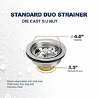 Kitchen Sink 3.5" Stainless Steel Drain Assembly W/Strainer Basket Rubber Stopper HIGHLY DURABLE: This Highcraft Sink Drain Assembly is made of Heavy Duty Stainless Steel which is built to last! STRAINER/STOPPER INCLUDED: Works as strainer and a plug, depending which feature you prefer FITS STANDARD DRAINS: (3-1/2 - 4 Inch -4-1/2 inch flange ), Detachable Parts ANTI - CLOGGER: Traps food debris to prevent clogs in your sink and has lots of holes in the basket for draining water easily. STAIN RESISTANT: Super easy to clean! just remove the basket to empty. And it's Dishwasher Safe This Standard Kitchen Sink Drain Assembly is made of highly durable stainless steel and includes a strainer basket which works as a strainer or a plug, depending on which way you want it designed with a stylish look to match your kitchen. And has a fixed post Stopper with a rubber seal, to close the drain. The size of the strainer is great for all standard Kitchen sinks with an opening of about 3-1/2 - 4 Inch. It's super easy to clean by removing the basket. Highly Durable This Everflow Sink Drain Assembly is made of Heavy Duty Stainless Steel which is built to last. Strainer/Stopper Included Works as strainer and a plug, depending which feature you prefer. Fits Standard Drains (3-1/2 - 4 Inch -4-1/2 inch flange ), Detachable Parts. ⚠ California Proposition 65 Warning: Shipping We offer FREE shipping on all orders! We ship within Three business days of payment, usually sooner. We use a selection of shipping services such as UPS, FedEx, USPS etc. We only ship to the lower 48 states, NO APO/FPO Addresses or No PO Boxes allowed.We Currently Not Ship to PO.Box , Local pickups and combined shipping options are not provided at this time. Return You can return a product for up to 30 days from the date you purchased it. Any product you return must be in the same condition you received it and in the original packaging. Please keep the receipt. Payment We accept payment by any of the following methods: PayPal, Please pay as soon as possible after winning an auction, as that will allow us to post your item to you sooner! Feedback Customer satisfaction is very important to us. If you have any problem with your order, please contact us and we will do our best to make you satisfied. Contact Us If you have any queries, please contact us via ebay. We usually respond within 24 hours on weekdays. Please visit our eBay store to check out other items for dicount ,Offers and sale! Thank you for shopping at our store.