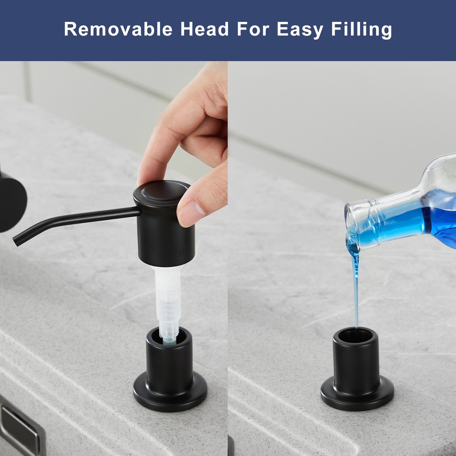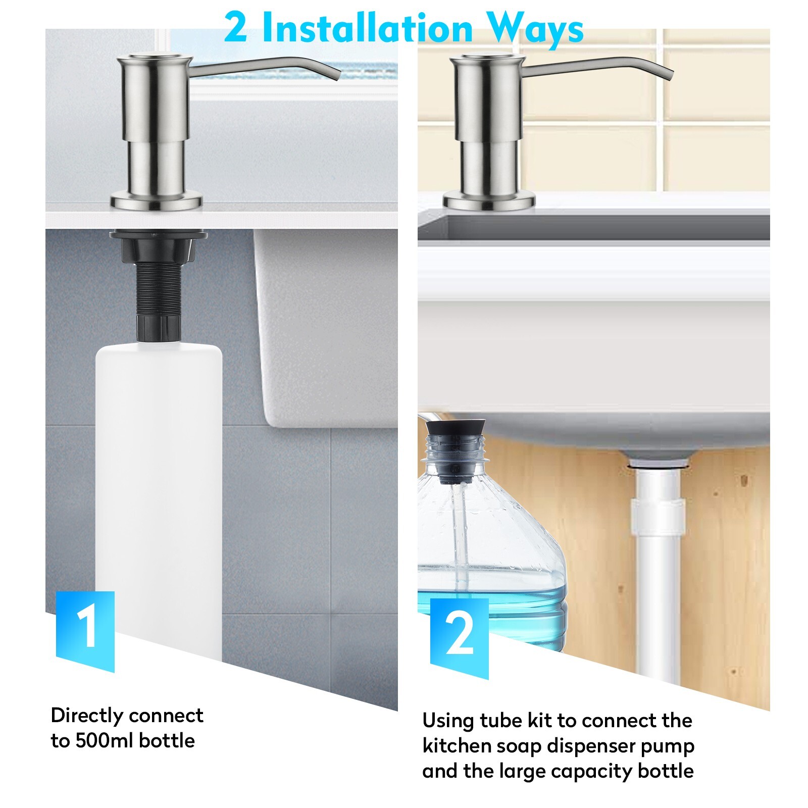 ✔Top Quality: heavy-duty 304 stainless steel Pump, PE plastic large capacity bottle, acid-resistance, corrosion-resistance,durable and matte black finished. ✔Refill From the Top: simply remove the dispenser head and refill with liquid soap----you do not have to remove the bottle and No more crawling under the sink! ✔Easy To Install and Use: Easy press dispenser offers an easy-dispensing mechanism. This soap dispenser is extremely easy to install in just a few short minutes. ✔Perfect for any at home cleaning, cooking. Helps reduce germs to prevent common sicknesses and disease. ✔5 year warrant: Enjoy the excellent shopping experience. If you have any problem, just contact us for refund or replacement.