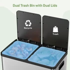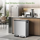 【Wet and Dry Separation】 kitchen trash can with a large 16-Gallon capacity, includes two removable inner bins for wet and dry separation, and easy loading and disposal of trash 【Quiet and Hands-Free】 Equipped with slow-close technology, the garbage can operates quietly. The convenient step-on design allows for hands-free use, making it easy to dispose of waste. Gently step on it to open the lid, no need to bend down to throw garbage 【Double Bins Double Lids】 The independent well-sealed bins lids to prevent garbage cascade odor. The stainless steel wire-drawing surface is simple to clean, ensuring a spotless appearance. 90-degree opening and closing, easy to change the garbage bag 【Modern and Durable】 The kitchen waste bins made from high-quality stainless steel, this kitchen trash can features a contemporary oval shape and a sloping lid, adding a modern touch to home decoration 【Muilt-Use】 trash bin offer a useful way to manage waste, is ideal for the kitchen, bathroom, bedroom, living room or activity room