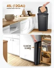 12 Gallon Foldable Garbage Can with Press Top Lid –A portable and convenient design for kitchen and outdoor events, temporary use. Why choose 12 Gallon Foldable Kitchen Trash Cans? 1. Spacious Capacity: With a generous 45-liter capacity, trash can is perfect for handling large volumes of waste, reducing the frequency of emptying and making it ideal for busy kitchens. 2. Collapsible Design: When not in use, this trash can folds for easy storage, saving valuable space in your home or office. Its lightweight and compact design makes it portable and convenient for outdoor events or temporary use. 3. Durable Construction: Crafted from high-quality materials, our trash bin is built to last. The sturdy frame and durable plastic ensure that it can withstand daily use while maintaining its shape and function. Product Information: Product size: 15.74''L×11.22''W×23.2''H Product weight: 3.3 LB Product capacity: 12 Gallon Folding thickness: 5.04''W What will you get? * 12 Gallons Foldable Trash Can Elevate your kitchen's style and functionality with Kitchen Waste Bins, please feel free to buy it! Large Capacity: Our foldable trash can holds up to 12 gallons of trash, perfect for kitchen, home, and outdoor parties. Its size is ample to meet your daily needs Foldable for Easy Storage & Portable: Perfect for kitchen use, outdoor events, camping, or as a temporary trash can for parties and gatherings. Its foldable design makes it easy to carry and store Press to Open Lid: garbage can features a press-to-open lid design, which means no more struggling with dirty hands to lift a trash can lid, just simply press the button and throw your garbage inside Durable and Sturdy Construction: Crafted from high-quality materials, this trash can stands up to daily use with ease. Its sturdy base ensures stability, while the reinforced edges maintain shape and durability, making it reliable for long-term use