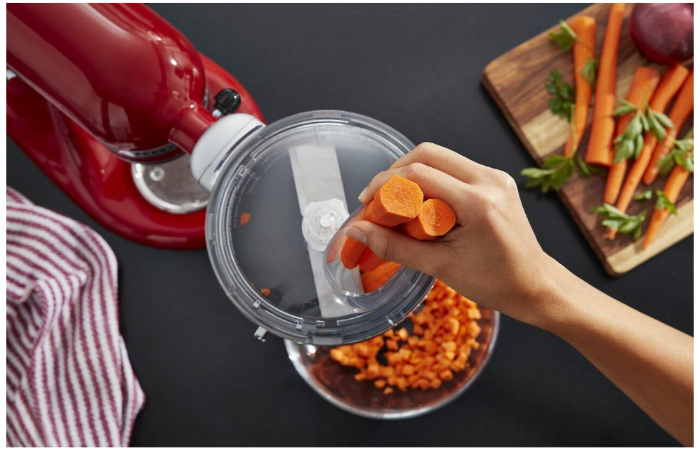 Brand KitchenAid Special Feature Manual Product Dimensions 6.9"D x 10.2"W x 9.7"H Color Silver Recommended Uses For Product Slice Wattage 20 watts Material Plastic Item Weight 7.04 Pounds Voltage 120 Volts About this item Connect to any household KitchenAid Stand Mixer* power hub and use the power of the motor to run the food processor attachment, *sold separately.Voltage: 120 V Dice, slice, shred or julienne a variety of fresh fruits, vegetables or cheeses ExactSlice system with external adjustable slicing lever always you to easily to go from thick to thin The wide feed tube accommodates various sizes of food for less prep work Model KSM2FPA includes (1) slicing disc, (1) shredding disc, (1) julienne disc, (1) dicing kit, (1) storage case
